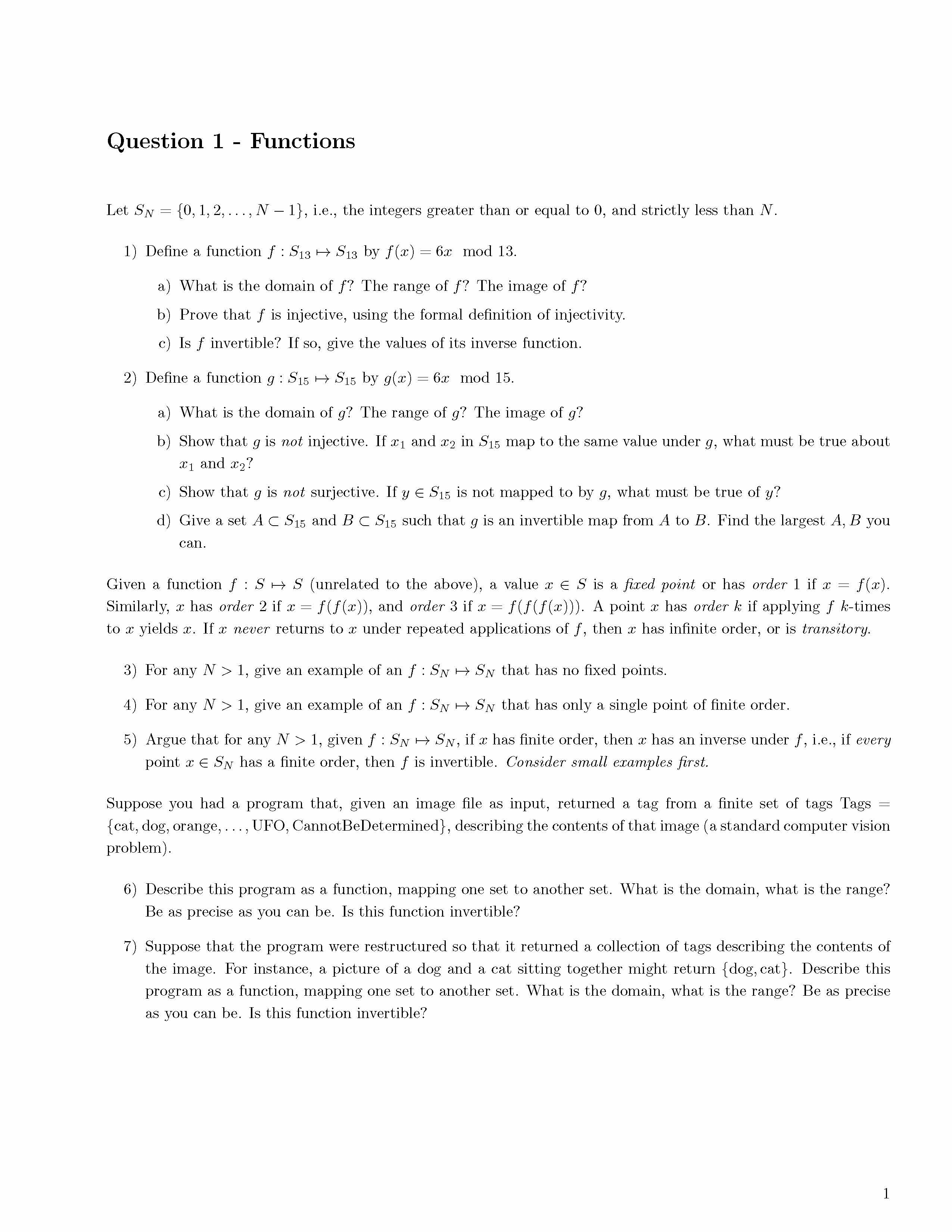 Question Functions Let SN {0,1,2 1}, i.e.. the integers grenter...