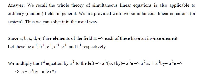 Let K be a field and a, b, c, d, e, f ∈ K with ad-bc≠0. Show th...