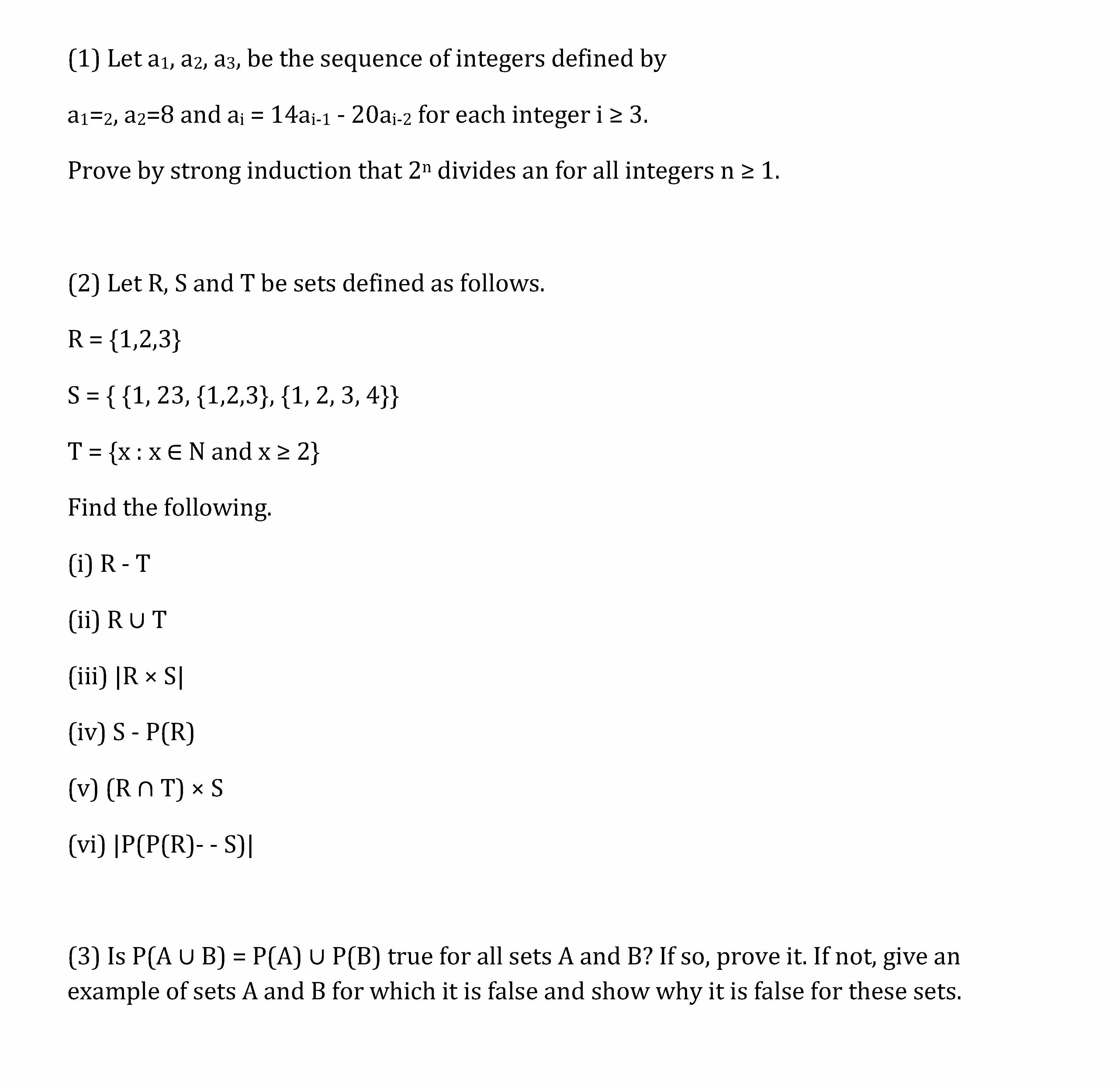 (1) Let a1, a2, a3, be the sequence of integers defined by a1=2, a...