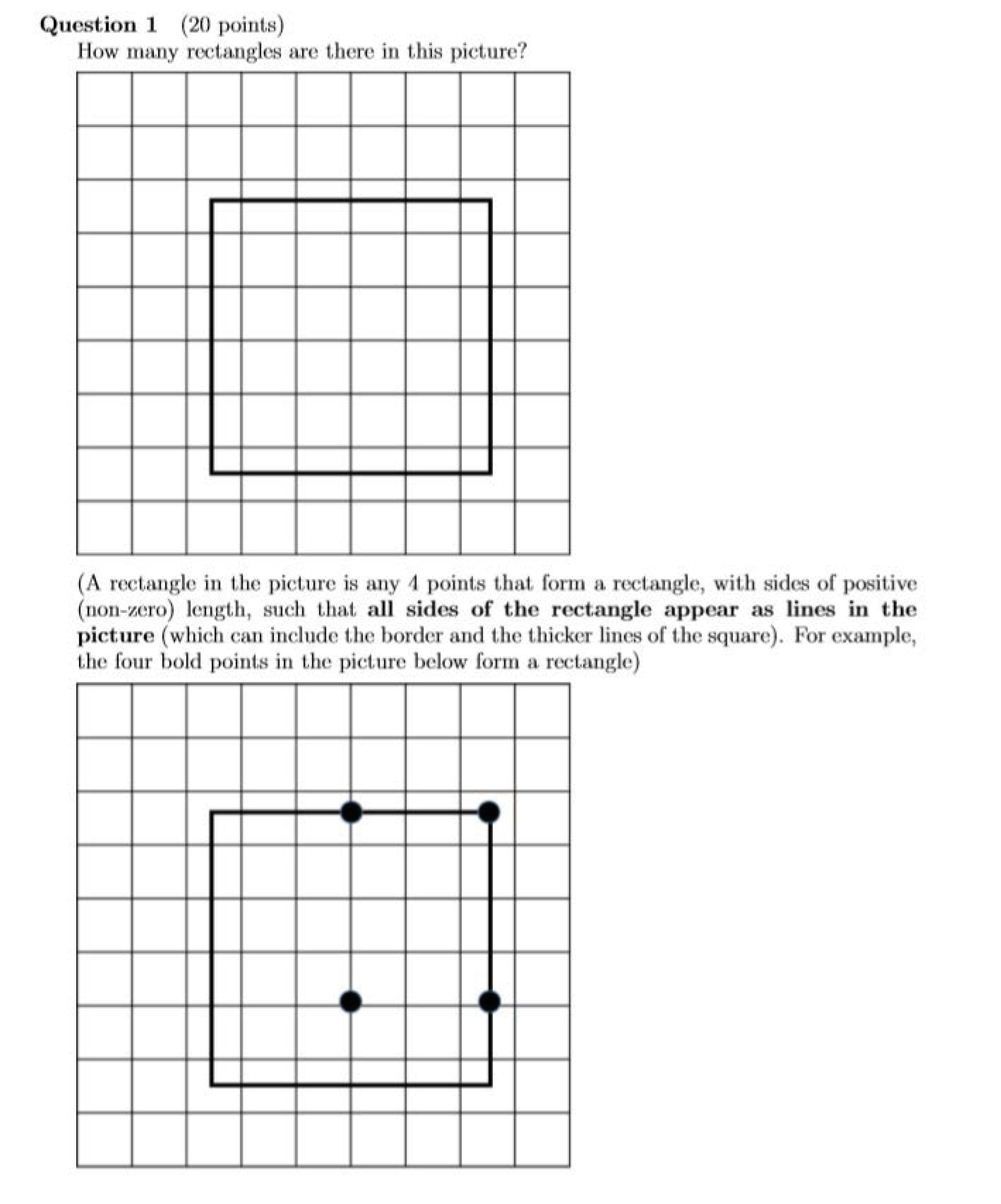 Question 1 (20 points) How many rectangles are there in this pictu...