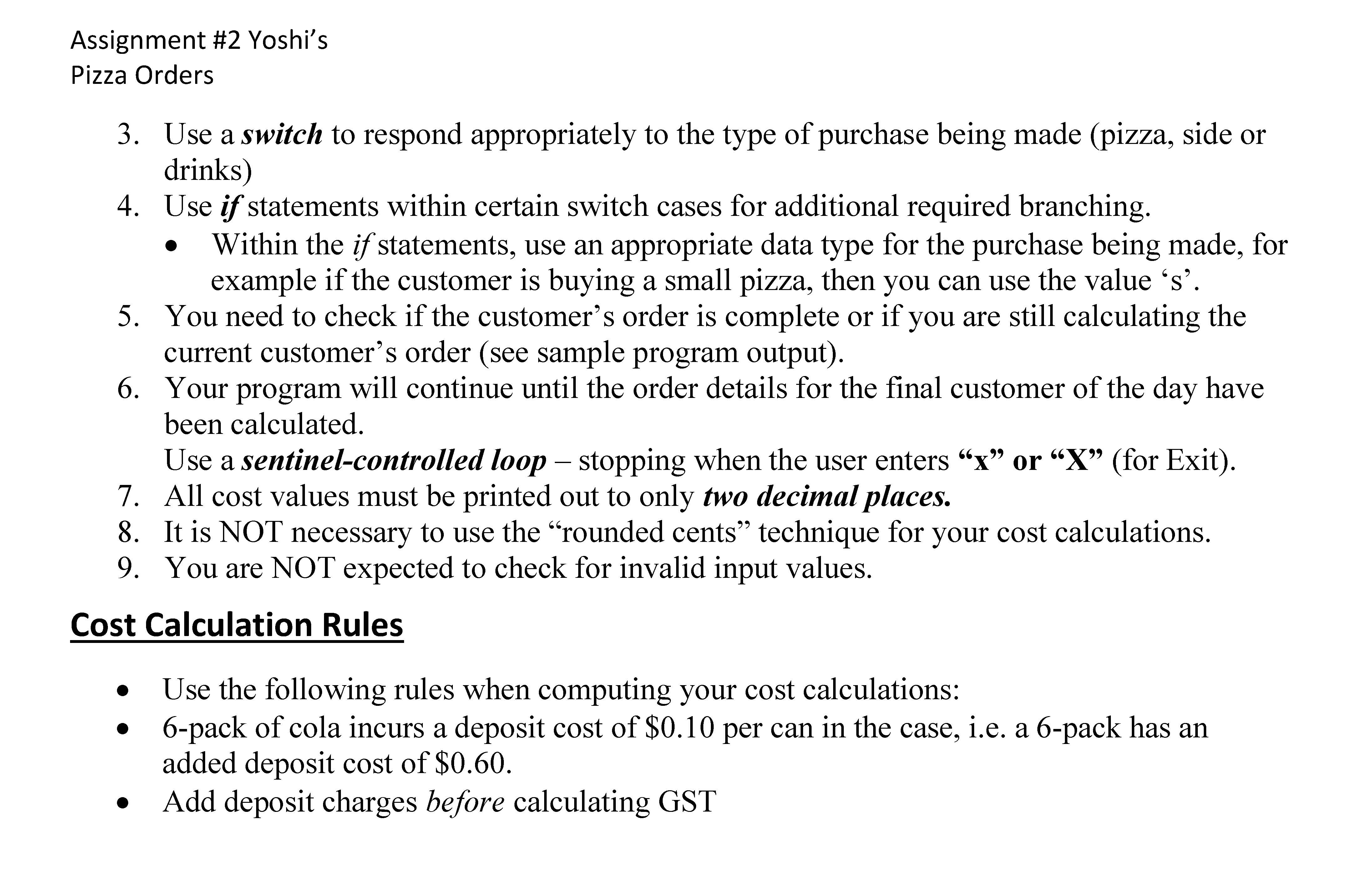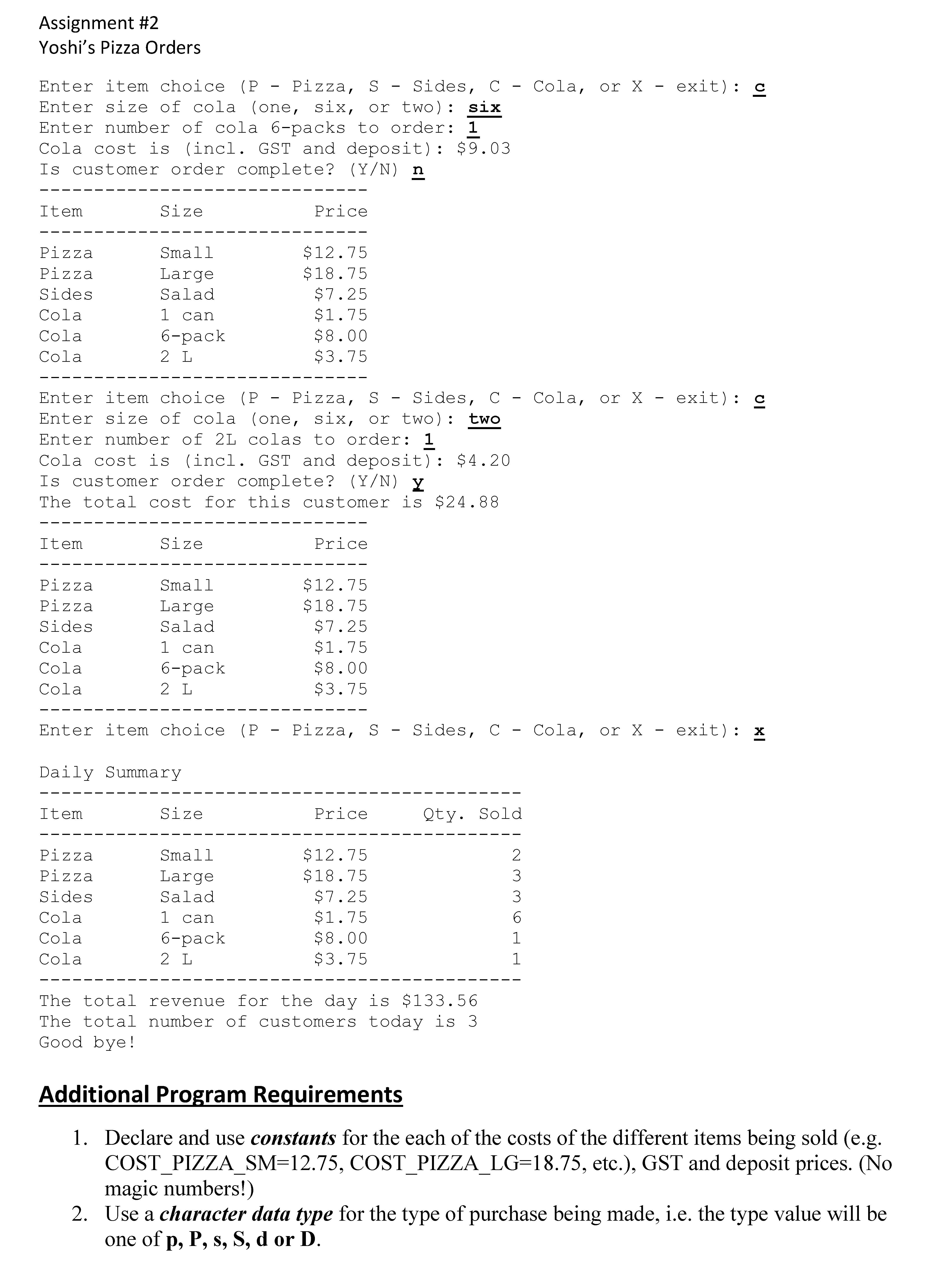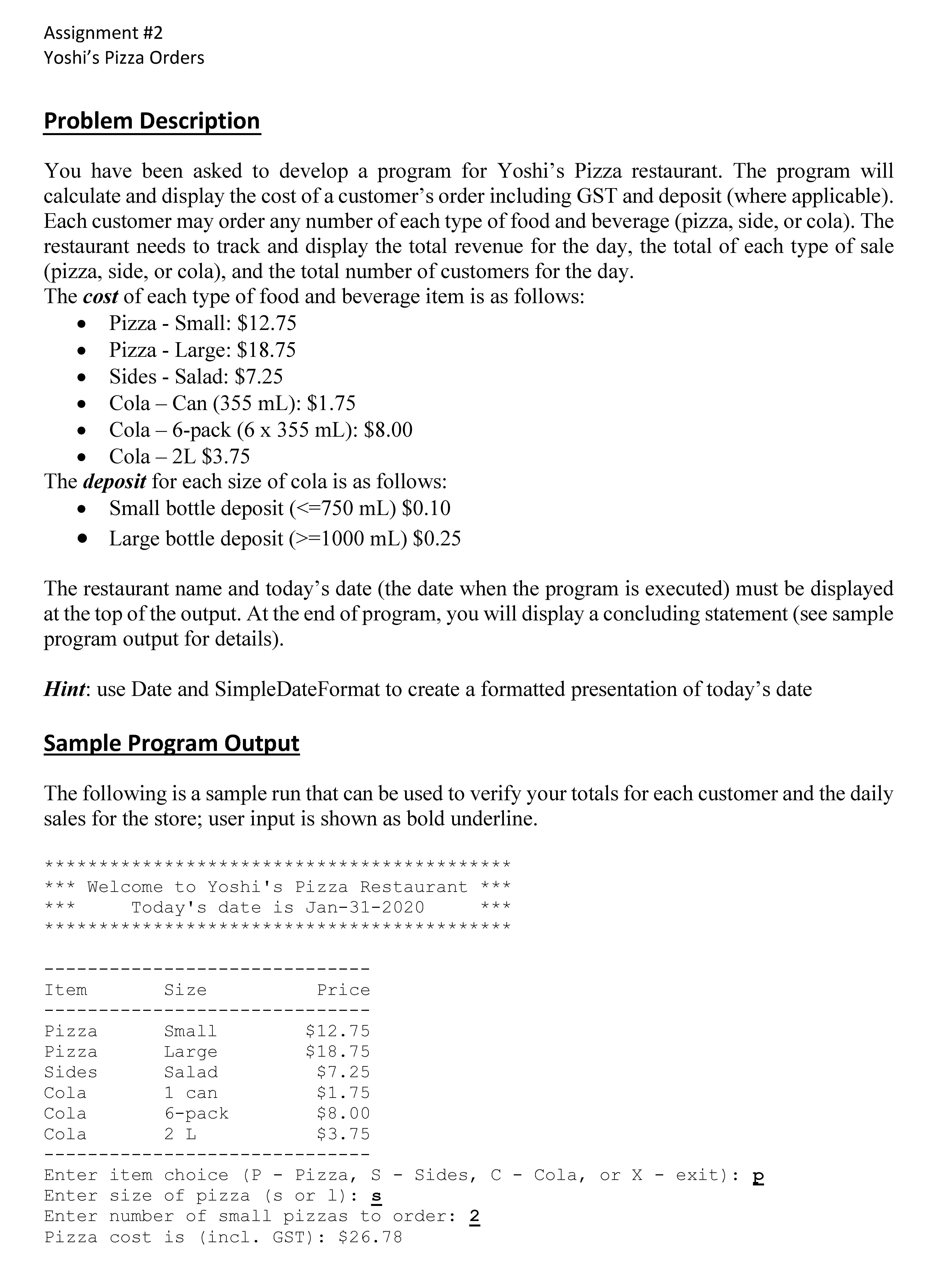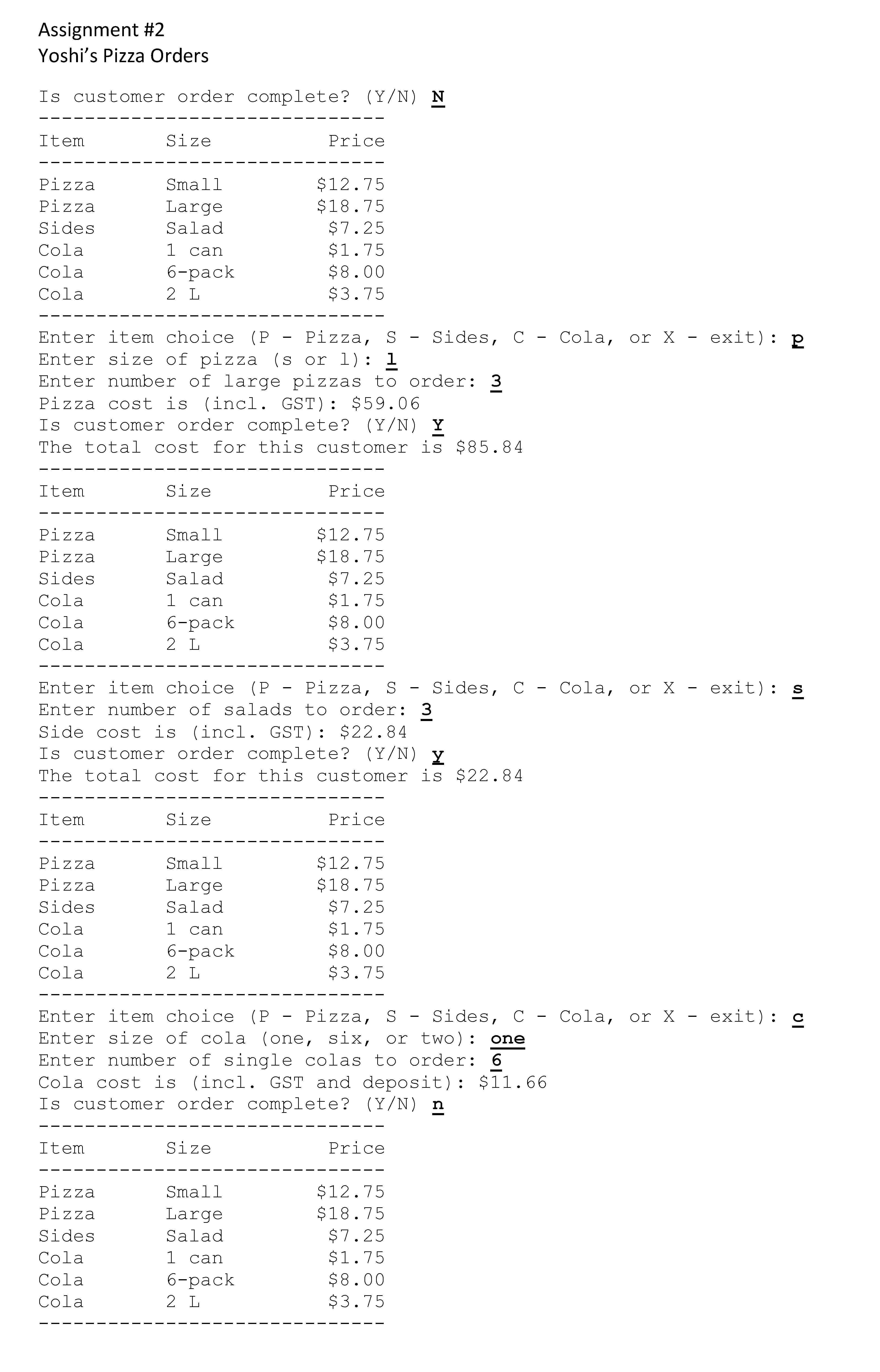 Assignment #2 Yoshi’s Pizza Orders Problem Description Yo...