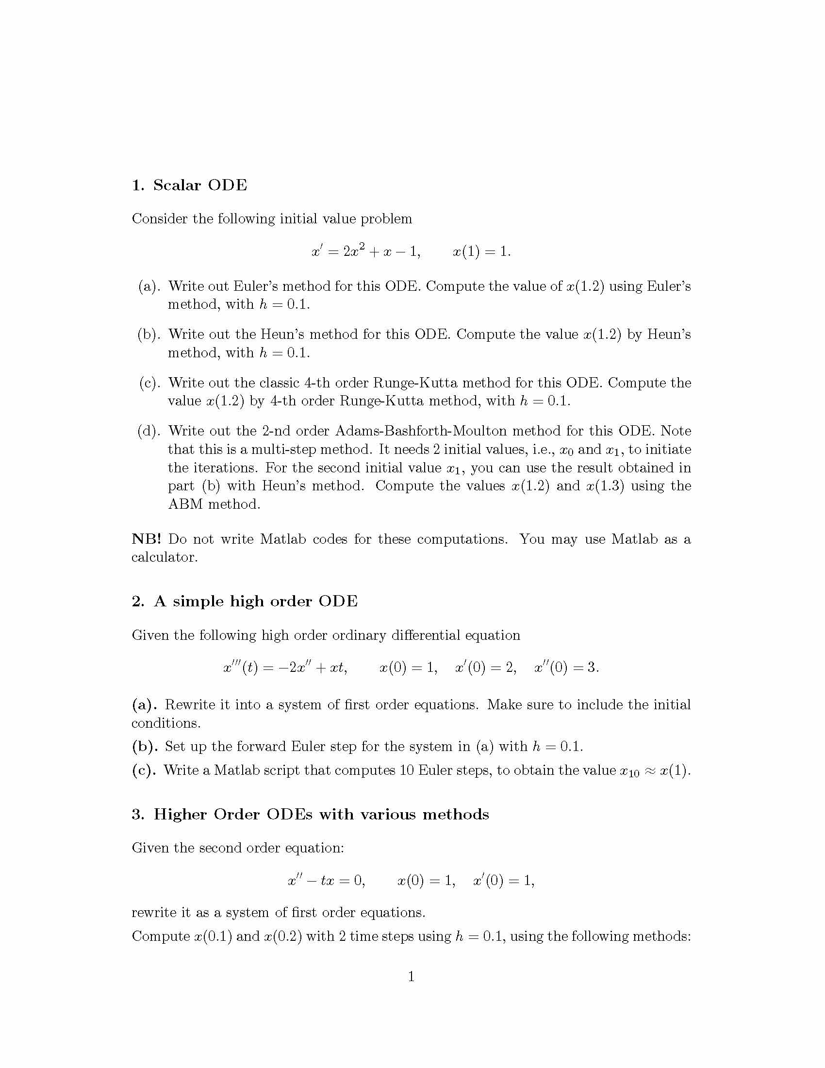 1. Scalar ODE Consider the following initial value problem x(1==1...