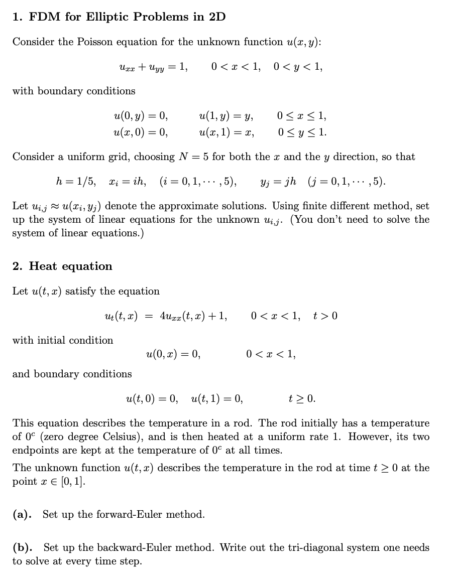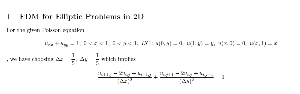 1. FDM for Elliptic Problems in 2D Consider the Poisson equation f...