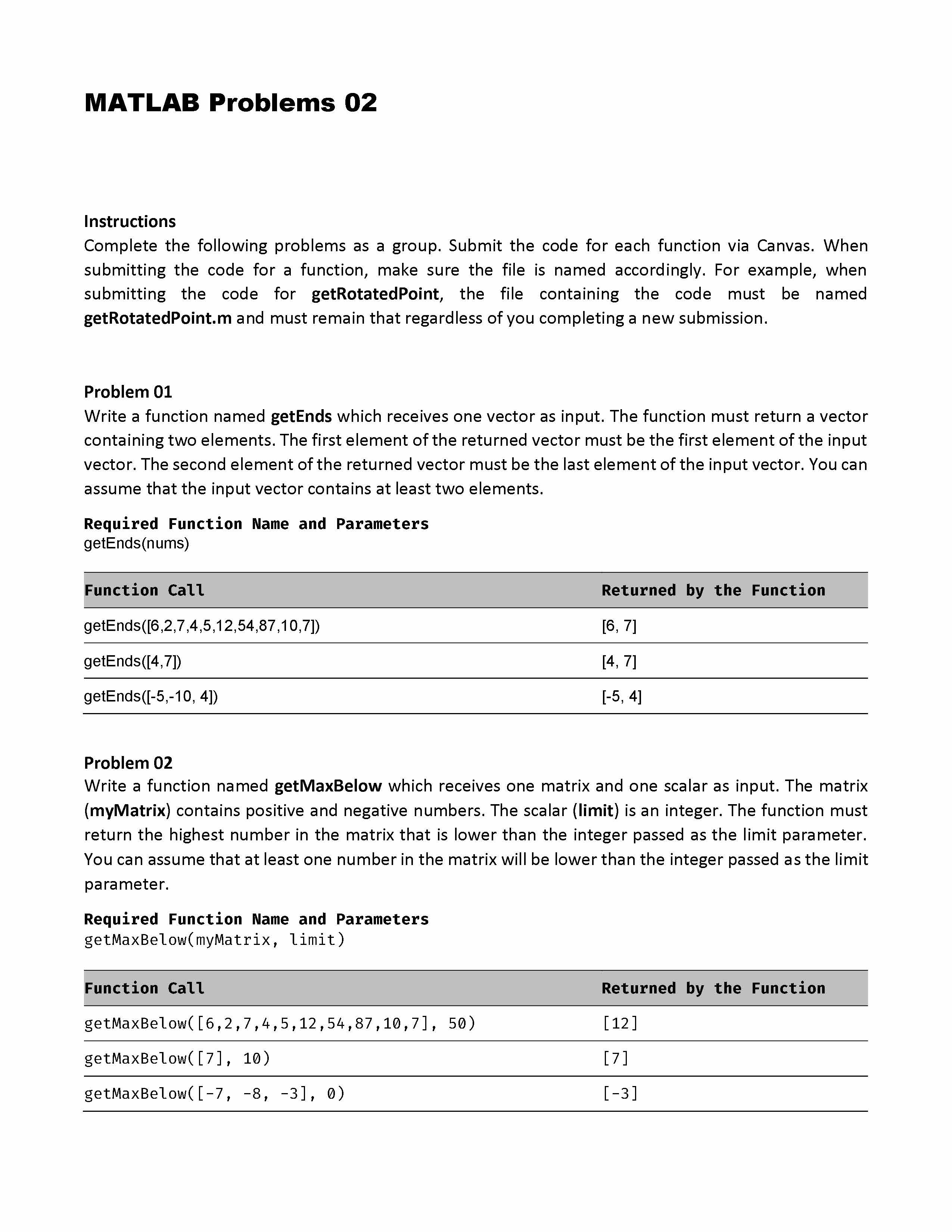MATLAB Problems 02 Instructions Complete the following problems a...