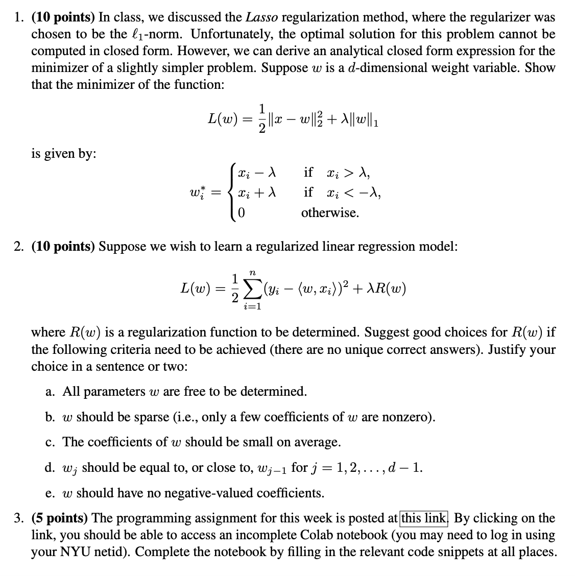 1. (10 points) In class, we discussed the Lasso regularization meth...