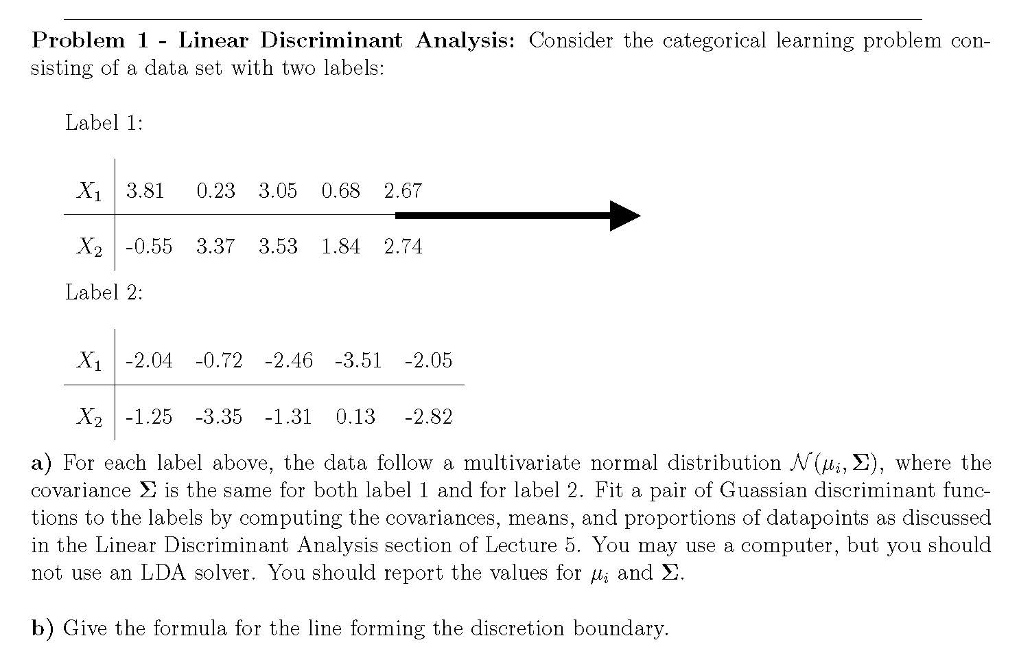 Problem 1 - Linear Discriminant Analysis: Consider the categorical ...