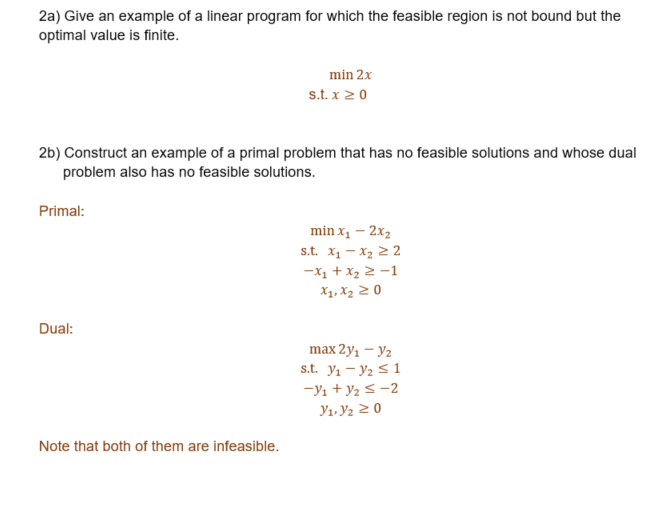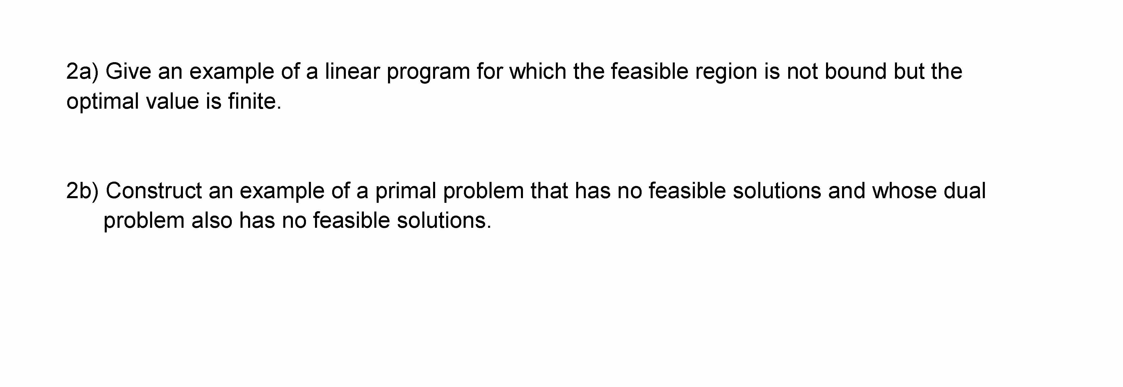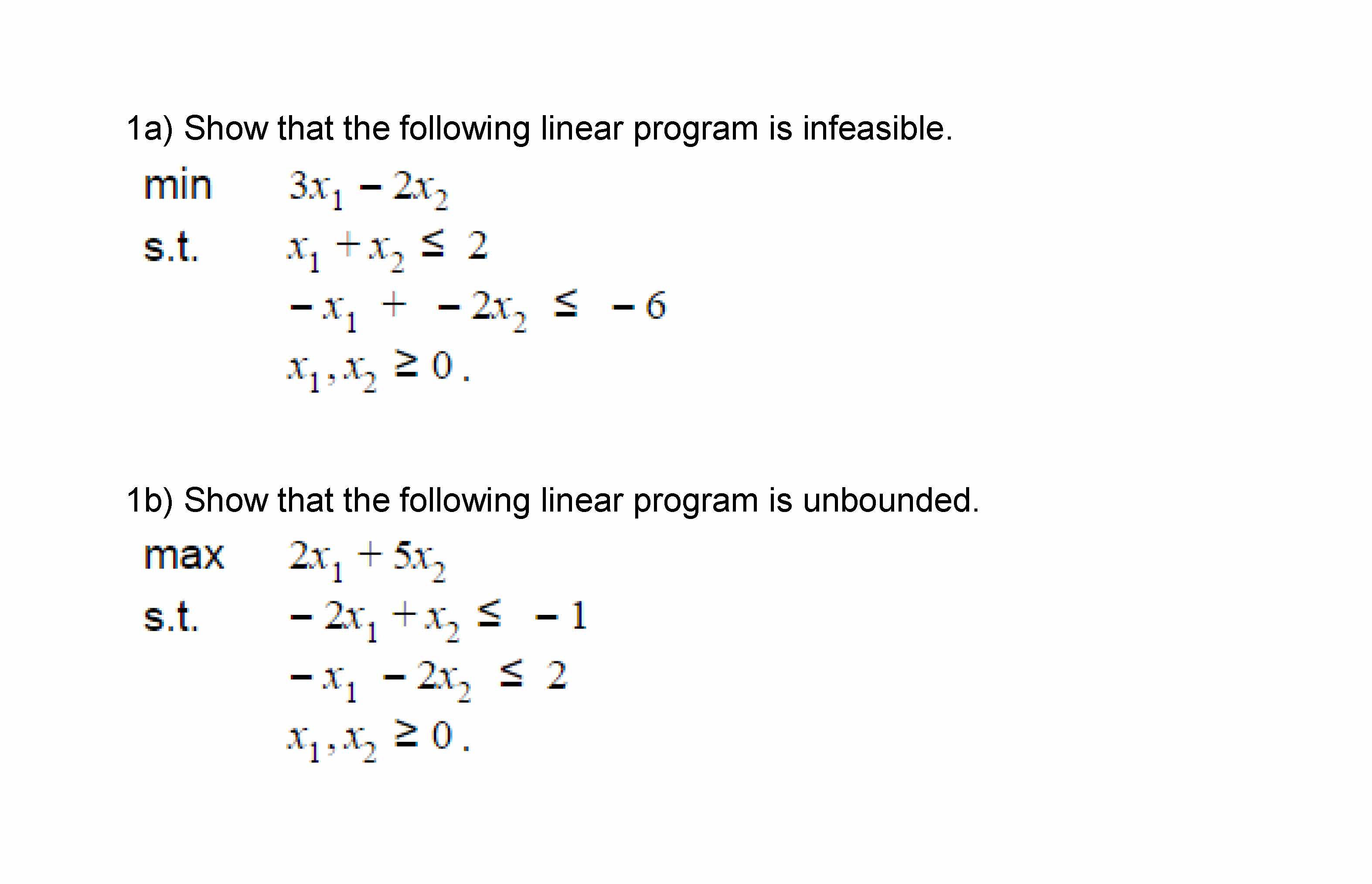 1a) Show that the following linear program is infeasible. 1b) Show...
