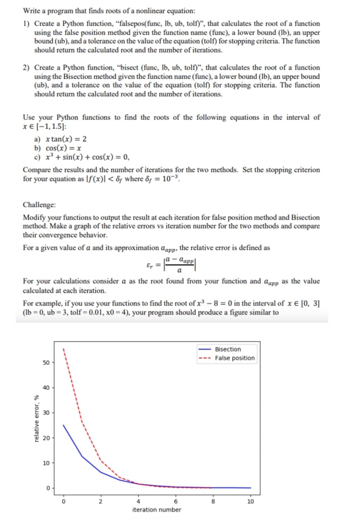 Write a program that finds roots of a nonlinear equation: 1) Creat...