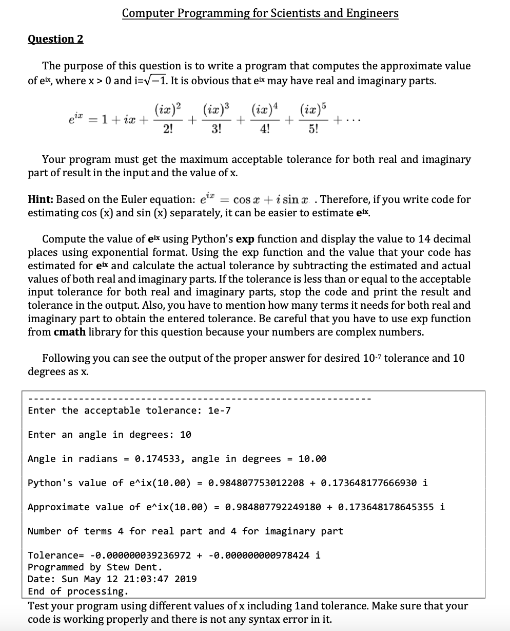 Computer Programming for Scientists and Engineers Question 2 The ...