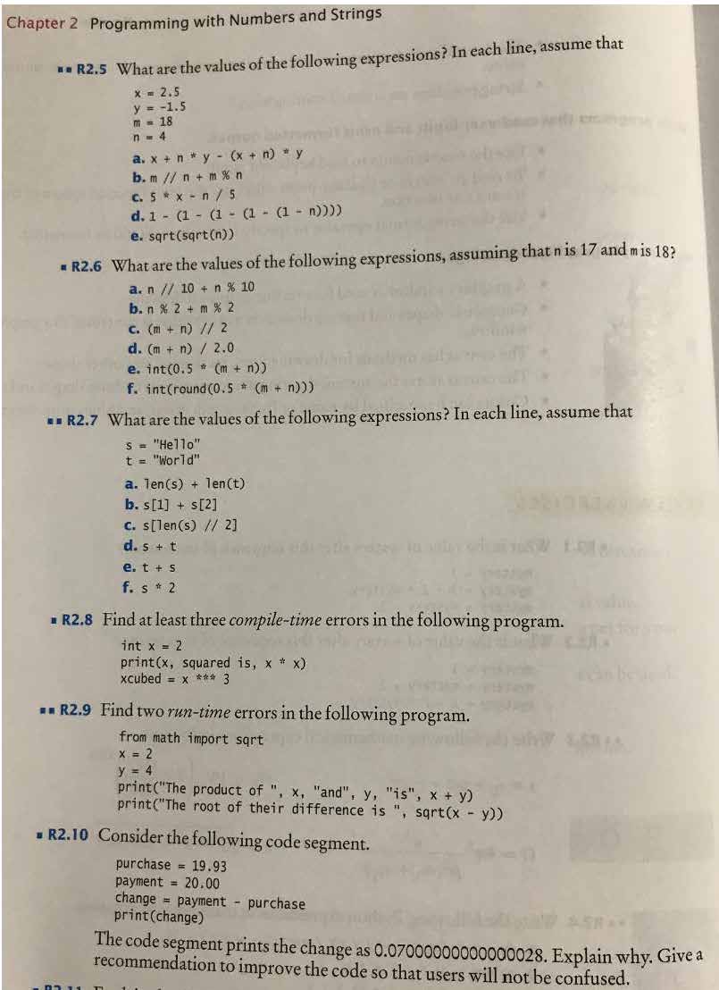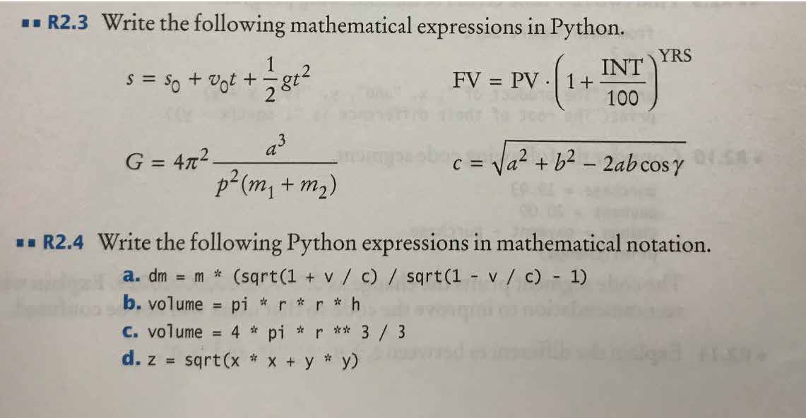 R2.3 Write the following mathematical expressions in Python. YRS ...