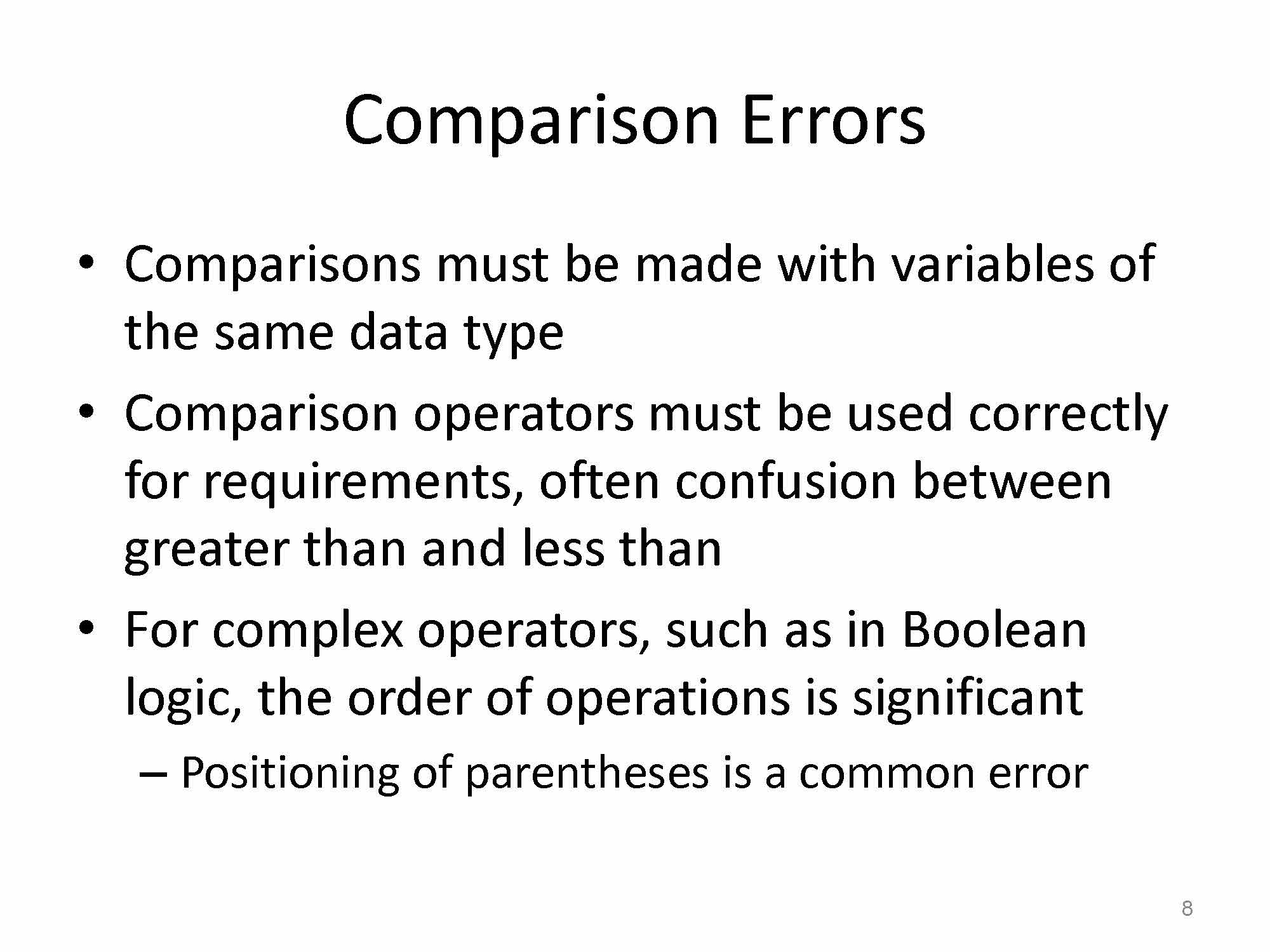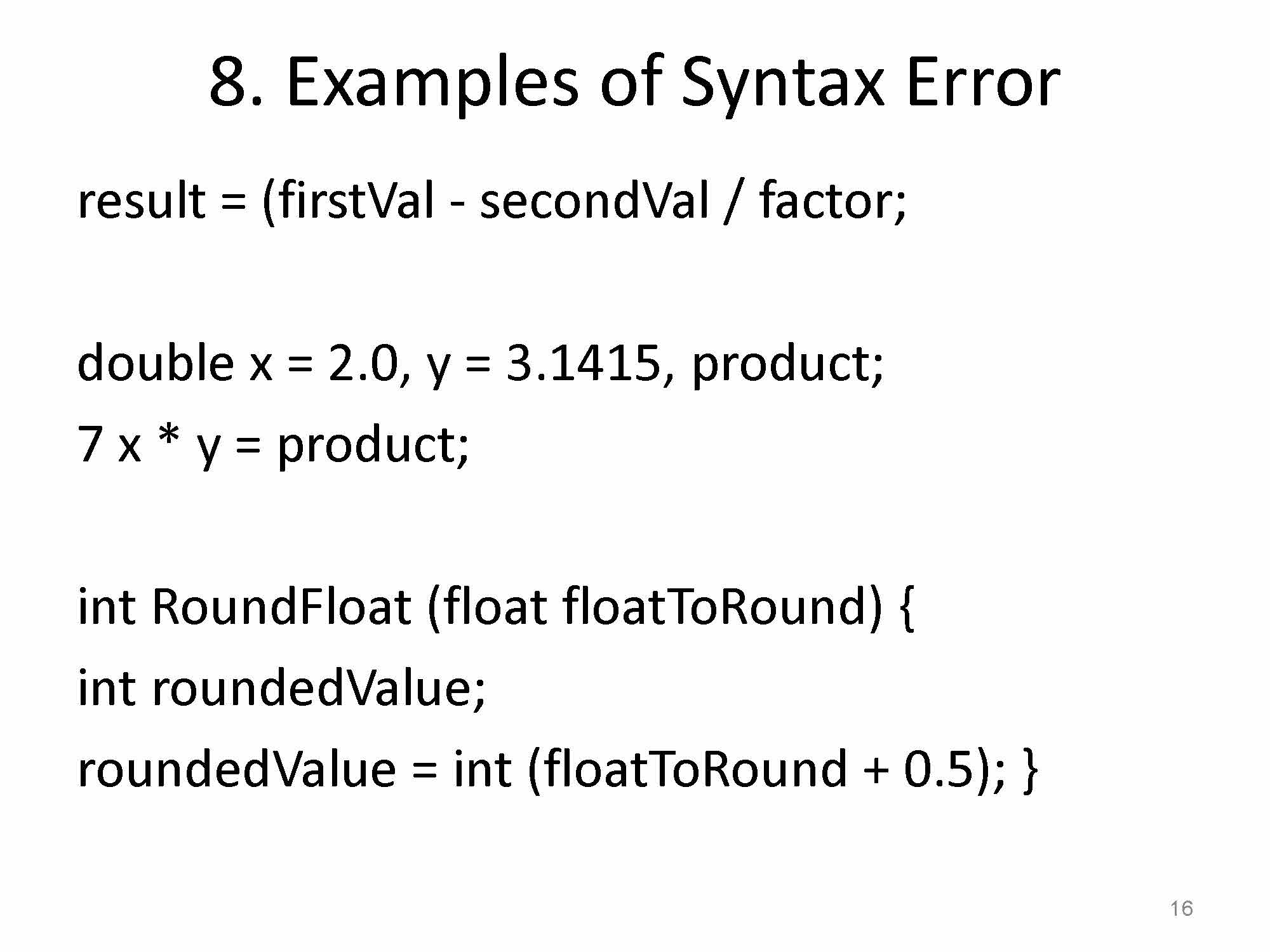Look at each of the 8 examples, classify the errors and describe w...
