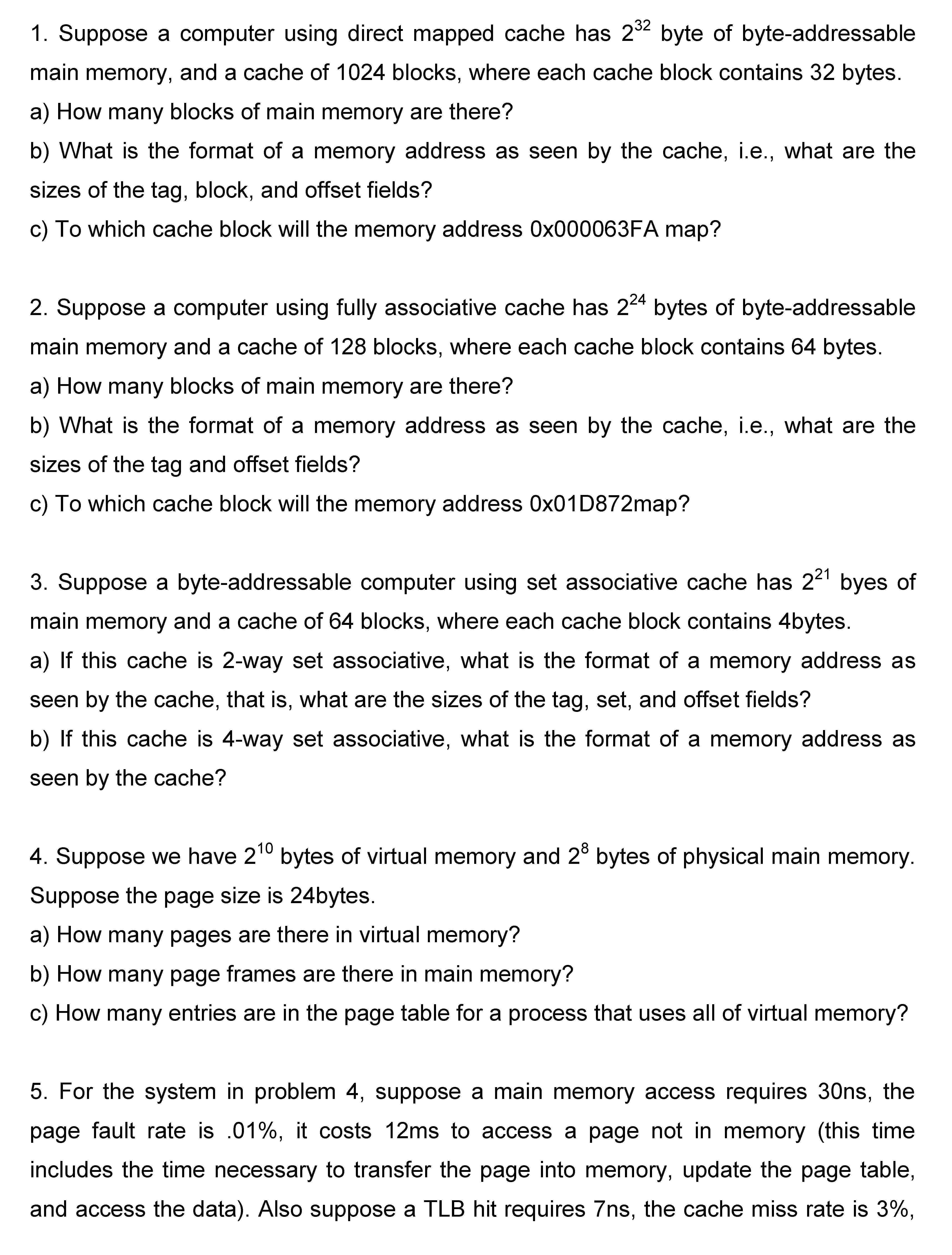 1. Suppose a computer using direct mapped cache has 2°2 byte of ...