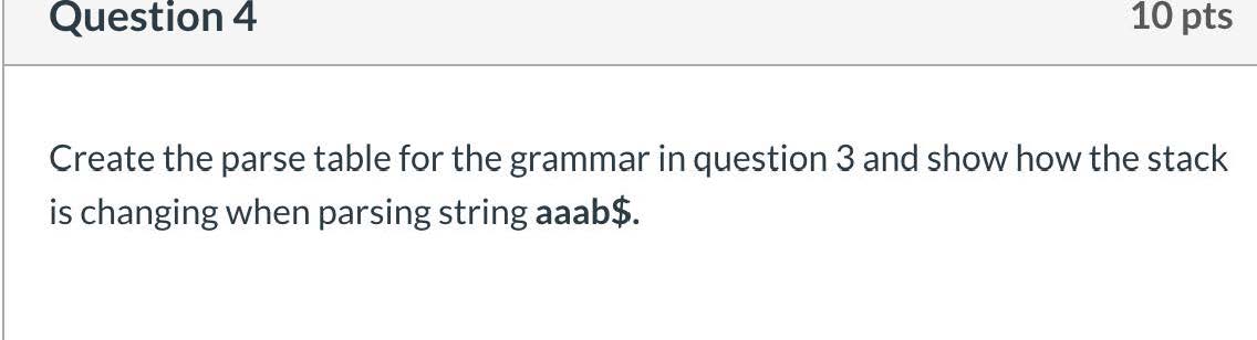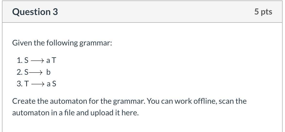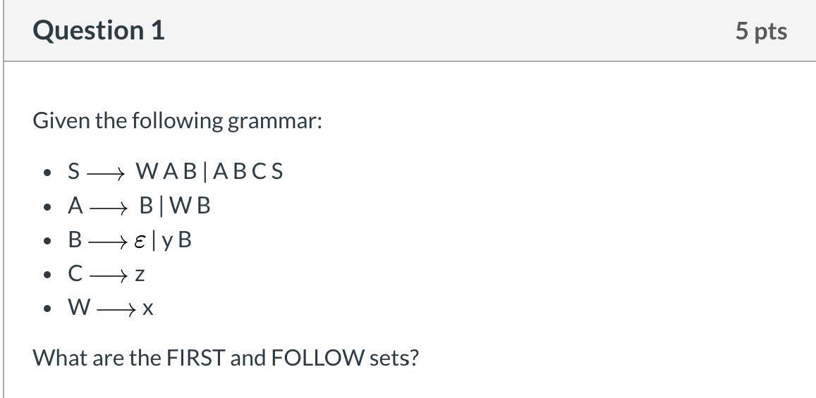Question 1 5 pts Given the following grammar: S W A B | A B C S...