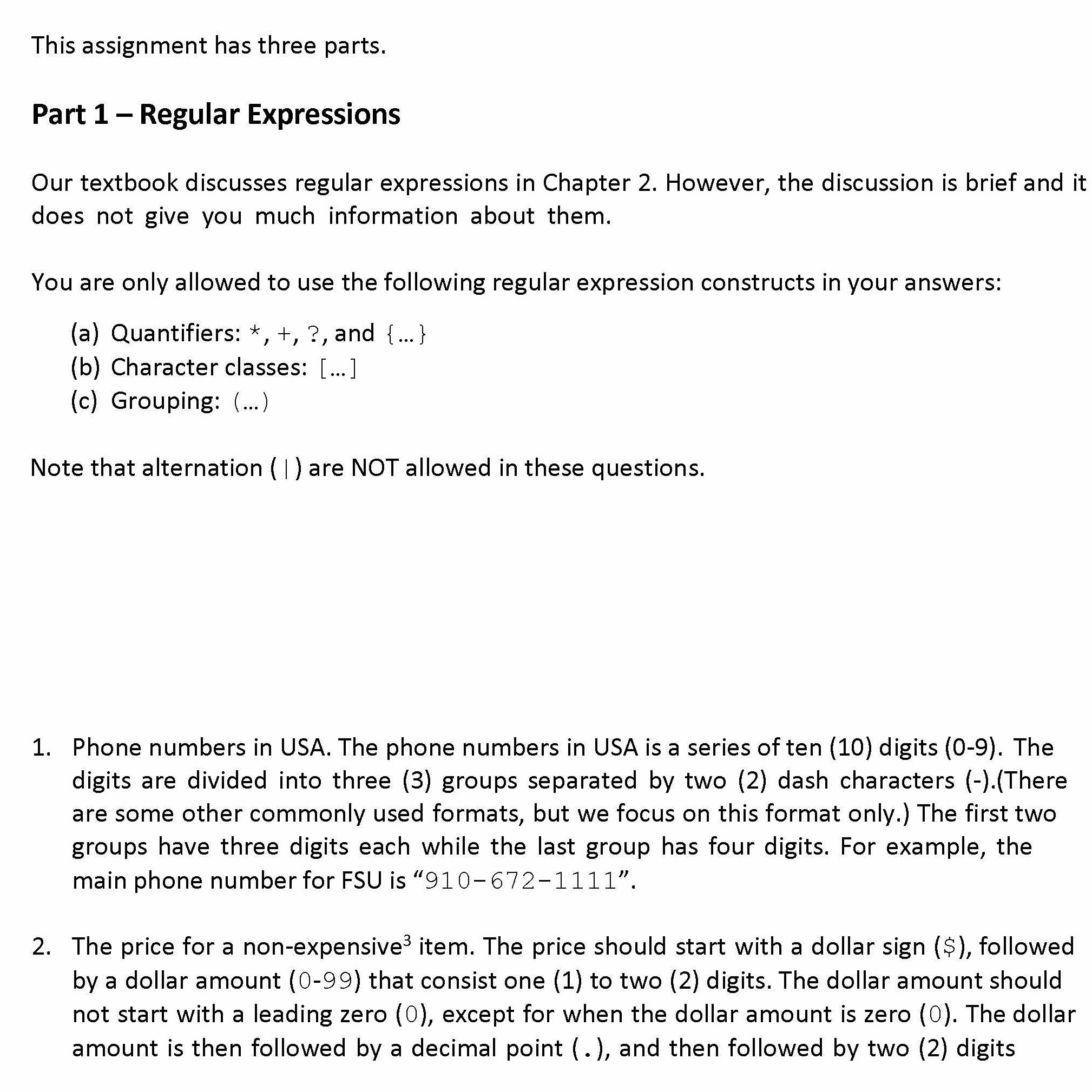 This assignment has three parts. Part 1 – Regular Expressions O...
