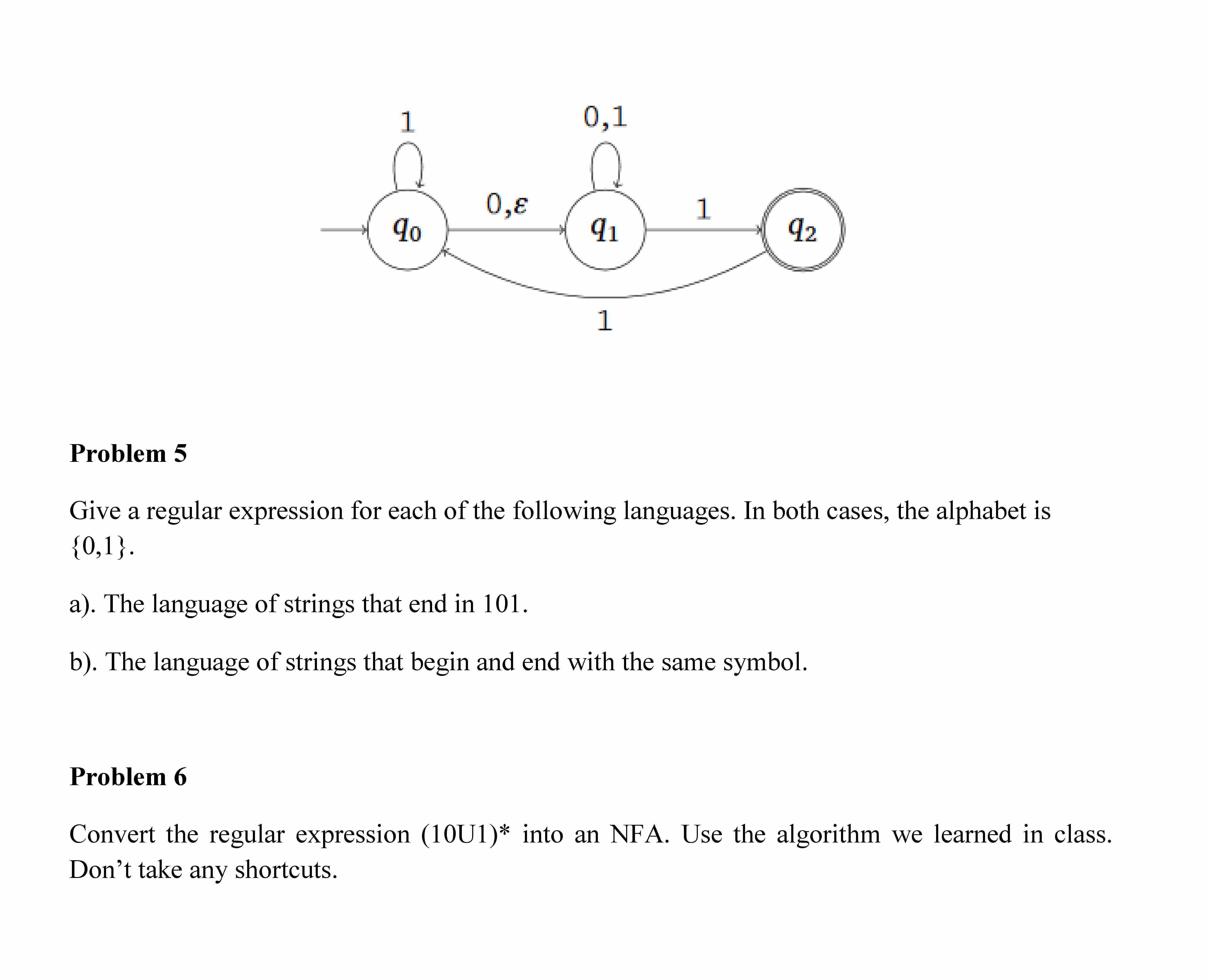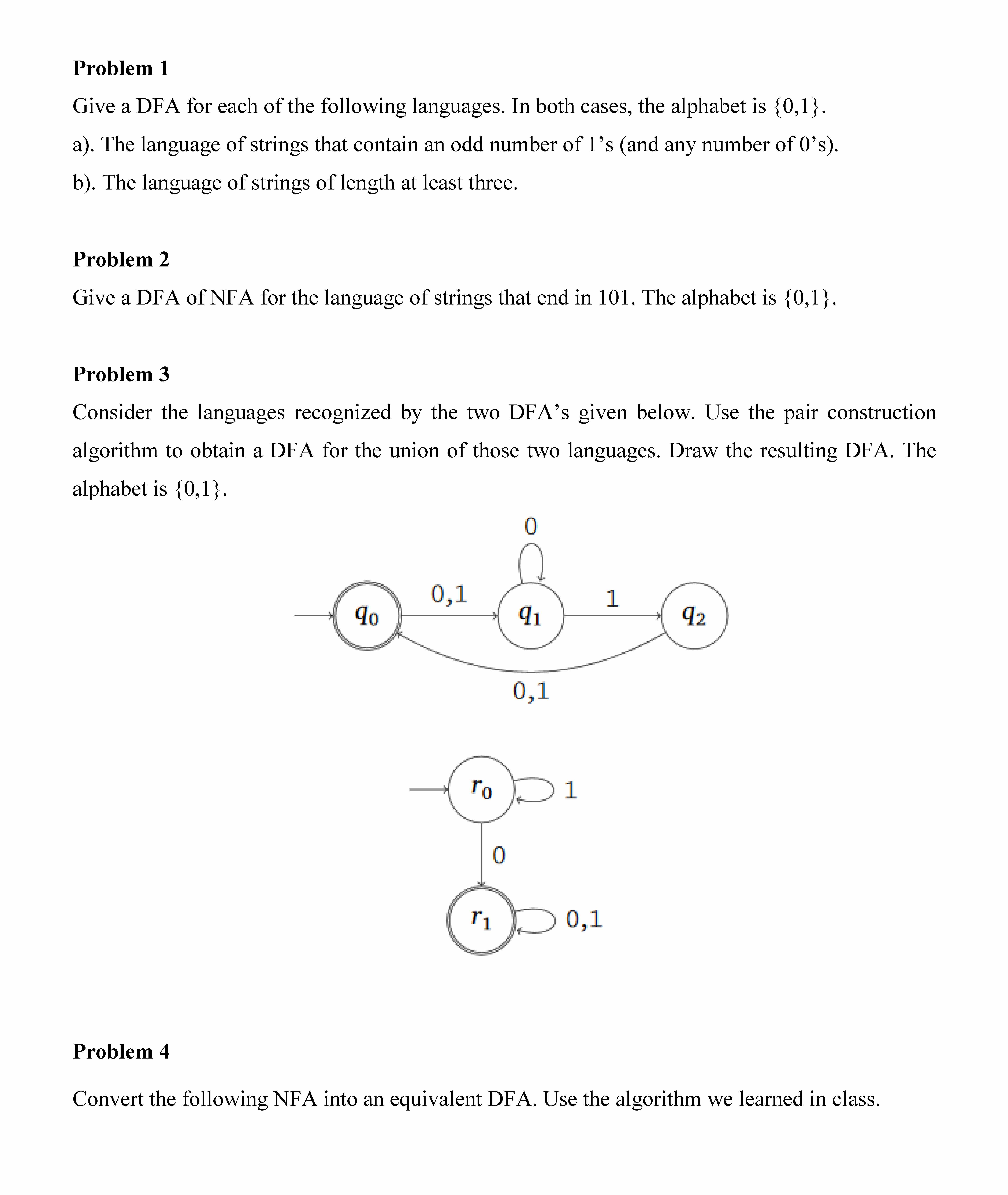 Problem 1 Give a DFA for each of the following languages. In both ...