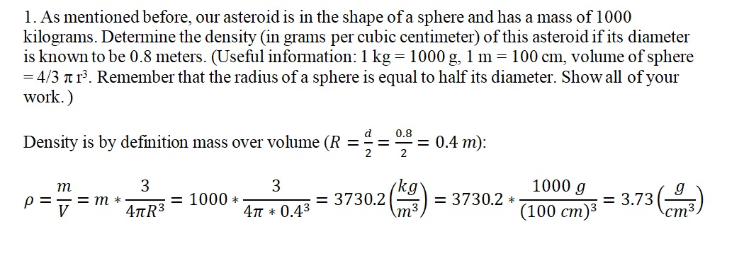 1. As mentioned before, our asteroid is in the shape of a sphere an...