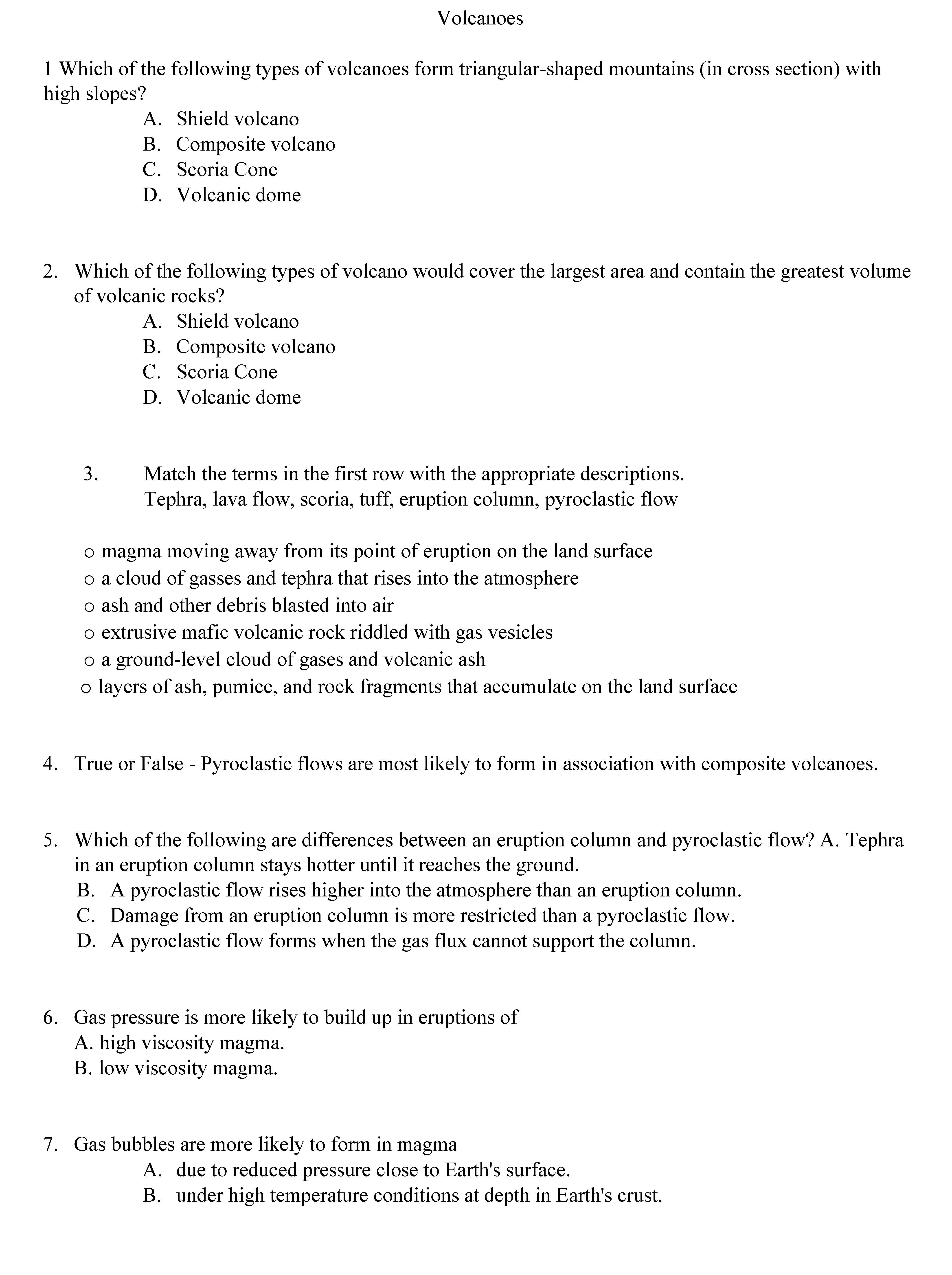 Volcanoes 1 Which of the following types of volcanoes form triangu...