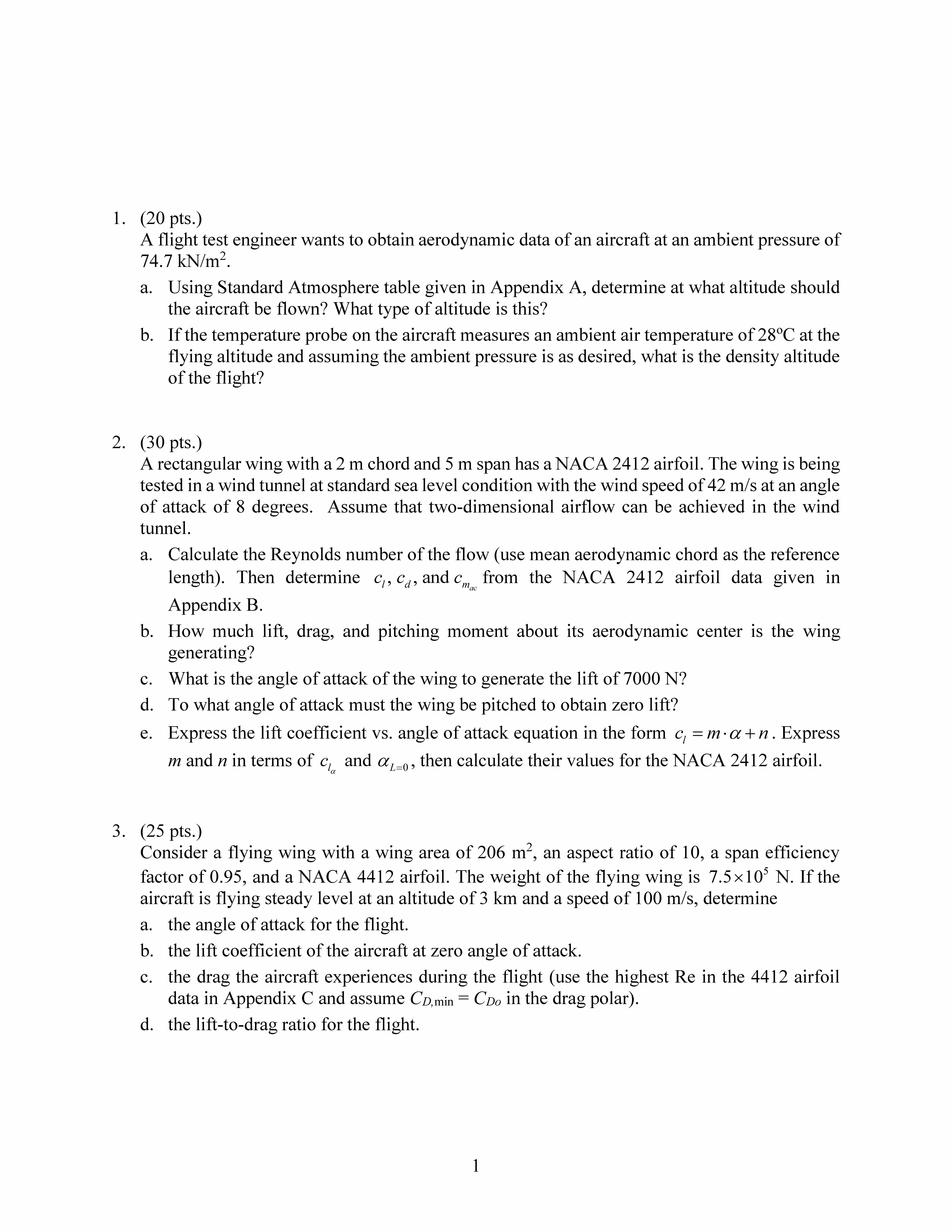 (20 pts.) A flight test engineer wants obtain aerodynamic data an ...