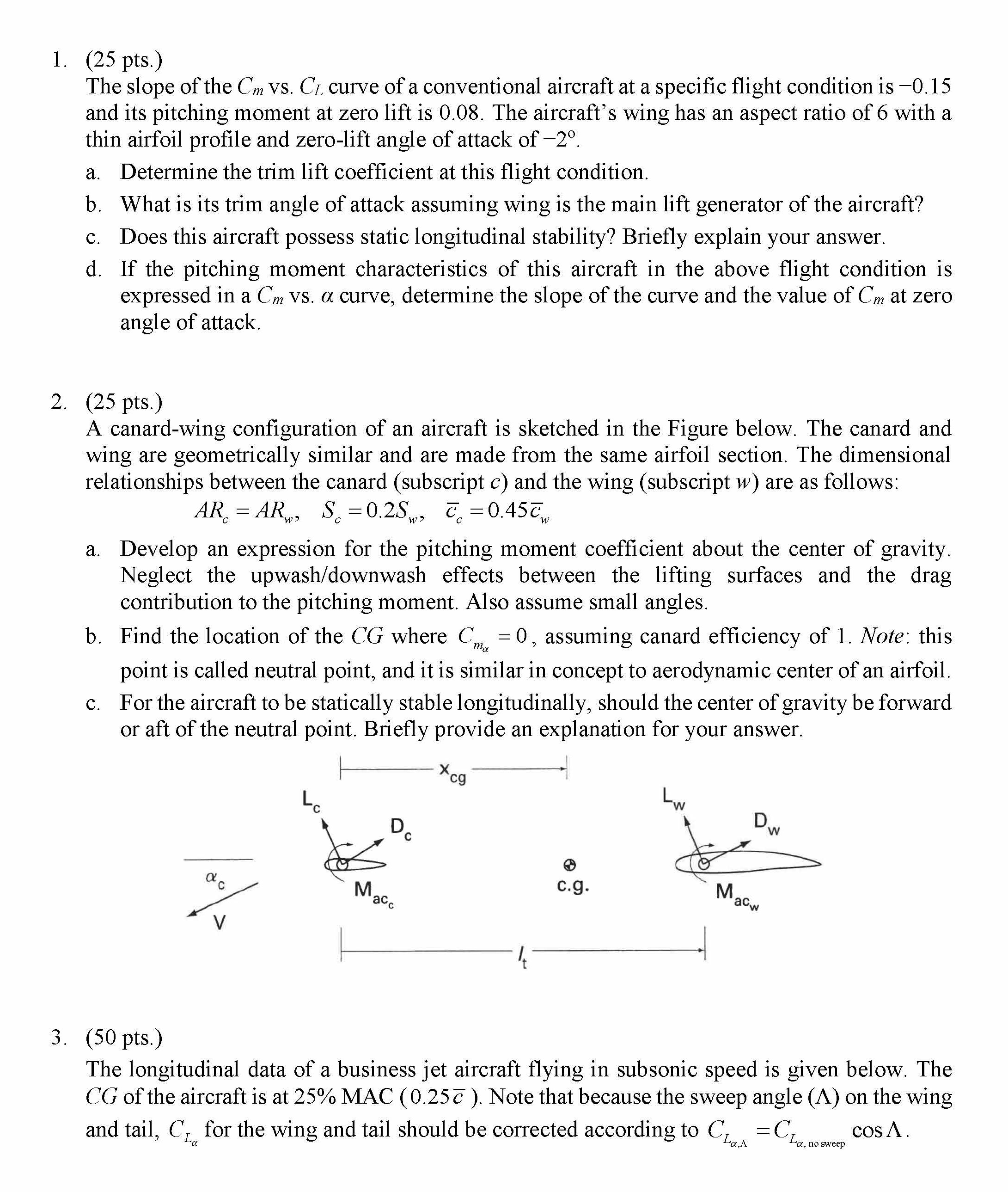 1. (25 pts.) The slope of the Cm vs. CL curve of a conventional ai...