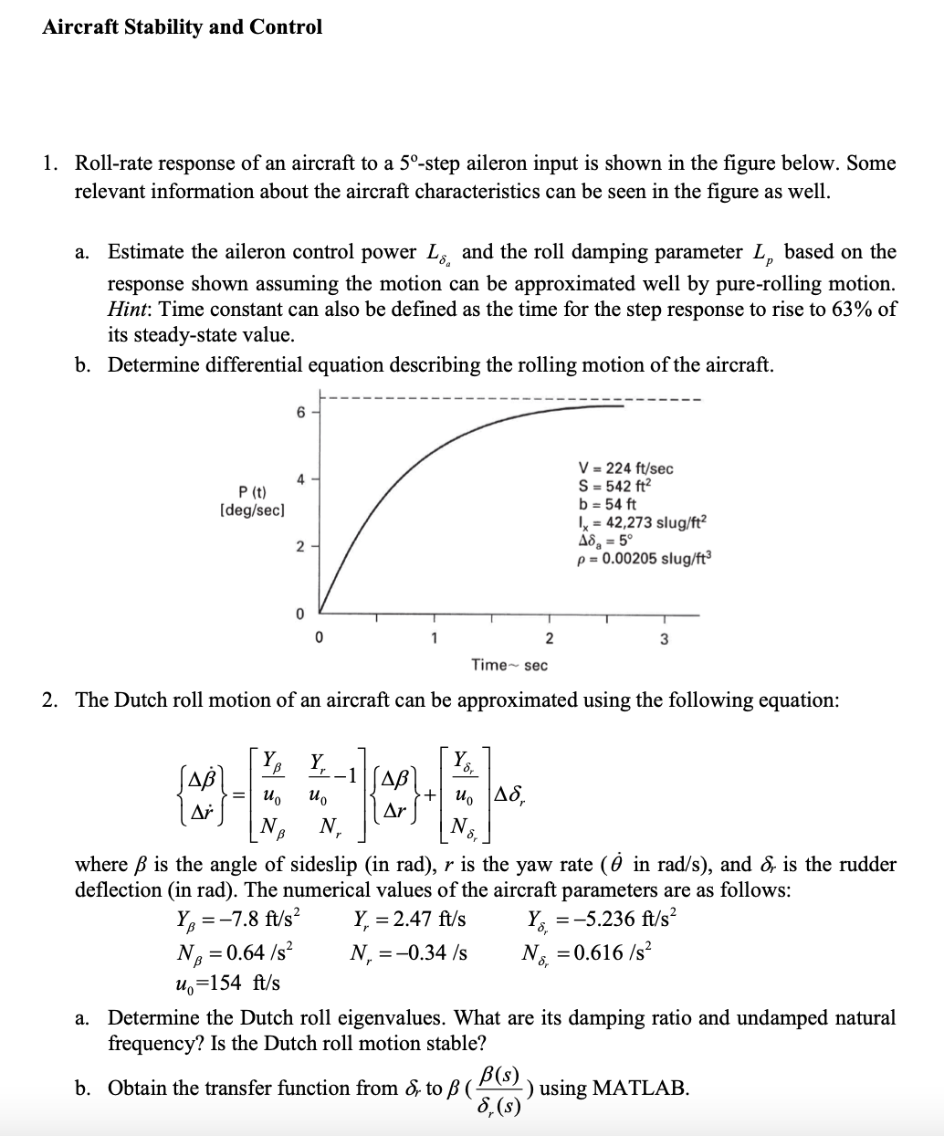 1. Roll-rate response of an aircraft to a 5°-step aileron input is...