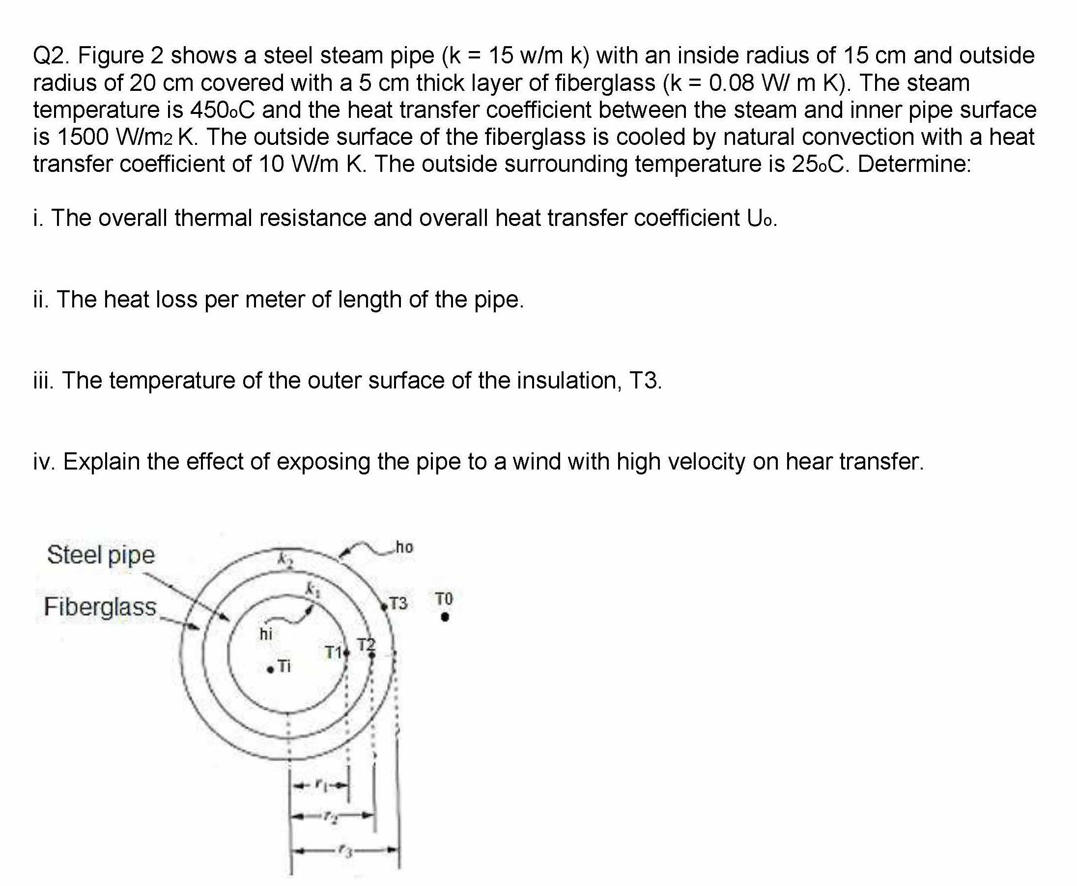 Q2. Figure 2 shows a steel steam pipe (k = 15 w/m k) with an inside...