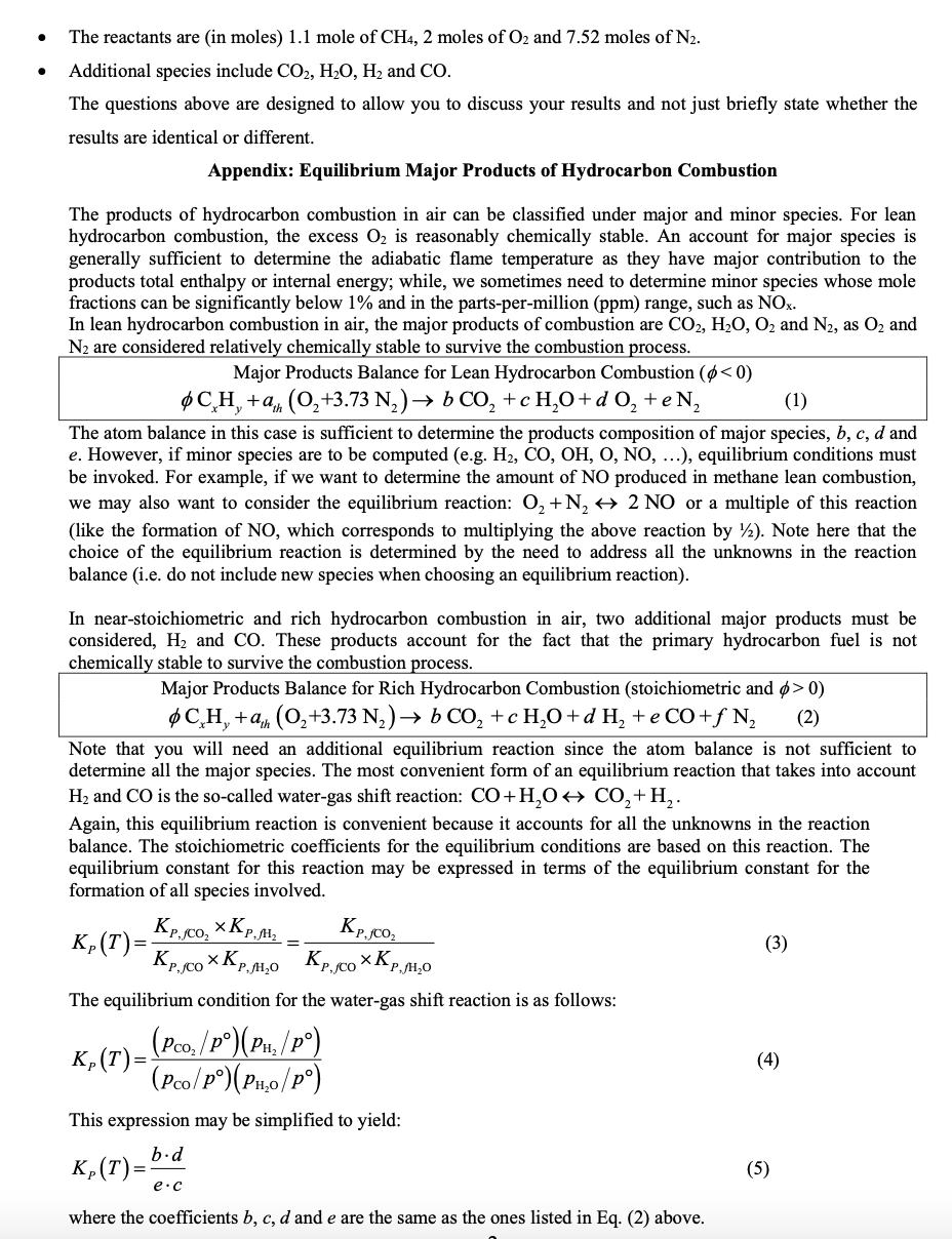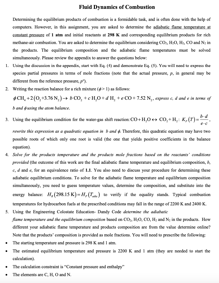 Fluid Dynamics of Combustion Determining the equilibrium products ...