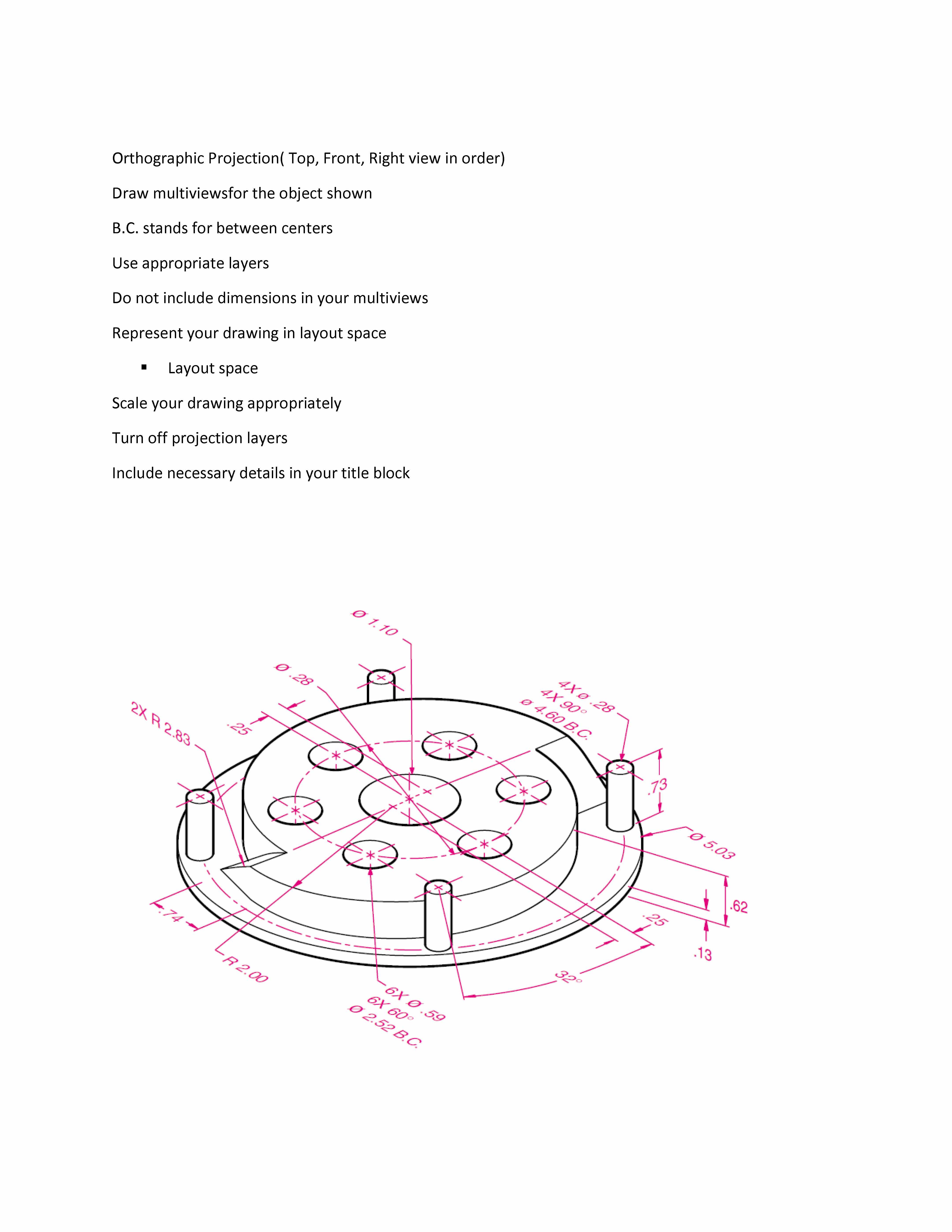 Orthographic Projection( Top, Front, Right view in order) Draw mul...