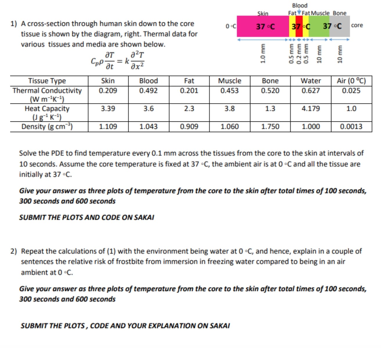 Blood Skin Fat V Fat Muscle Bone 1) A cross-section through huma...