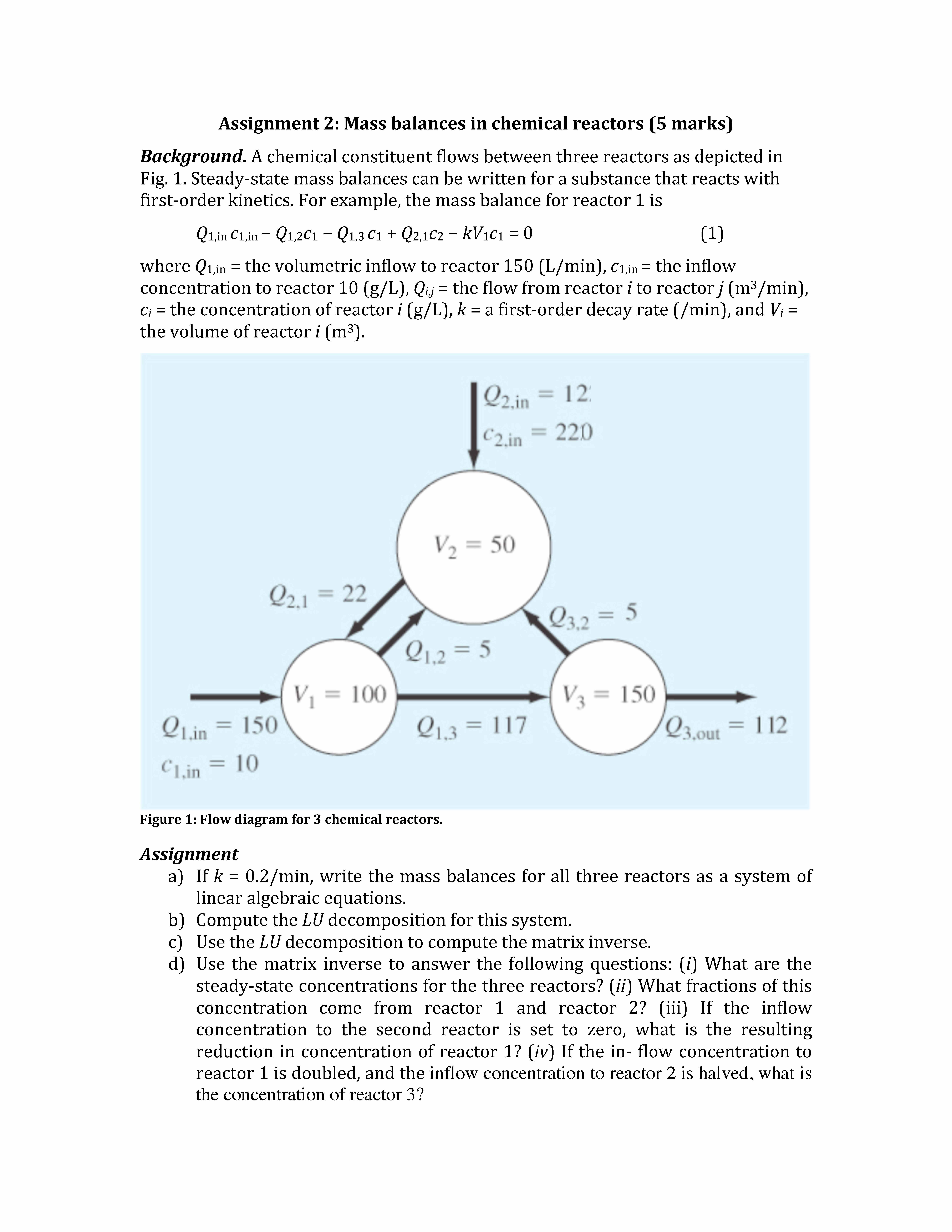 Assignment 2: Mass balances in chemical reactors (5 marks) Backgro...