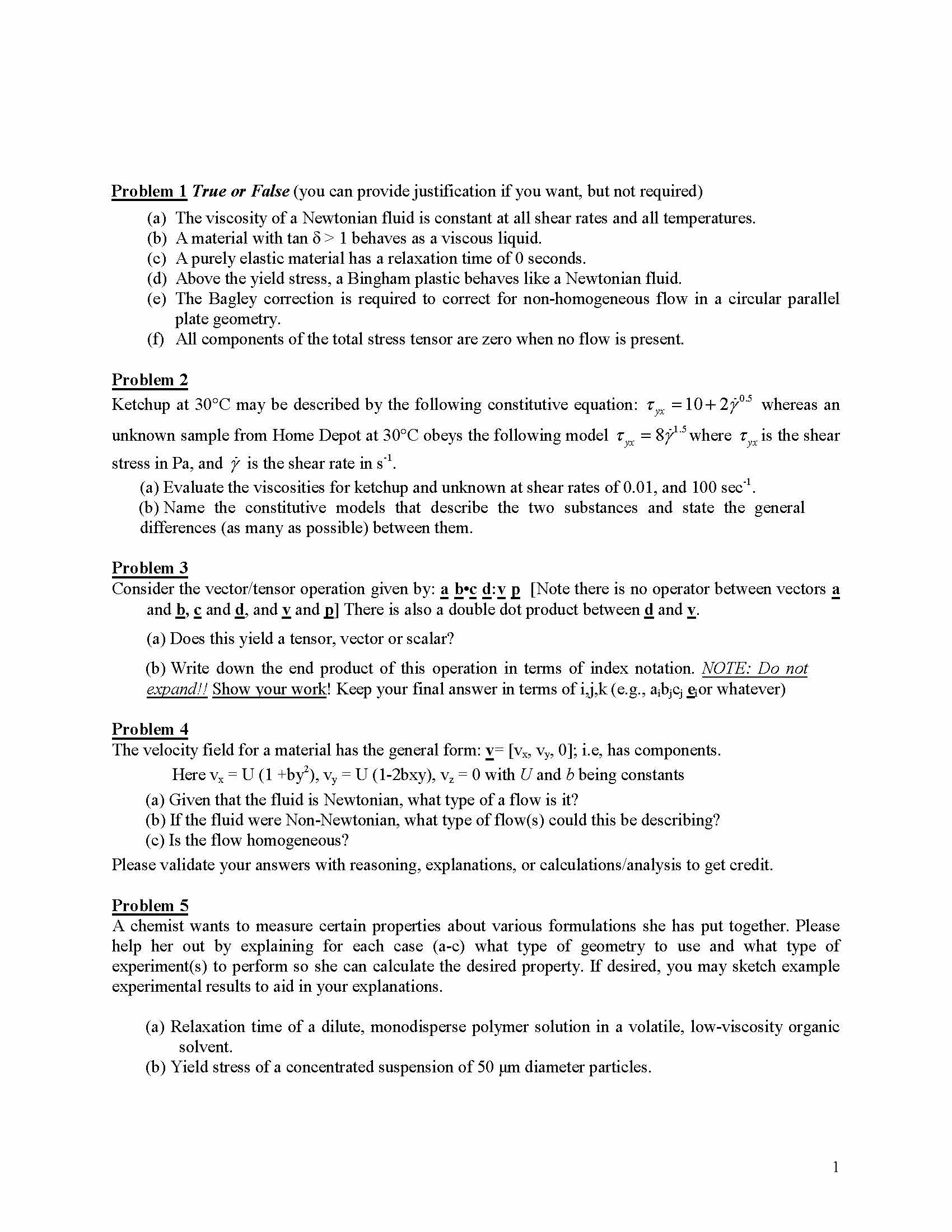 Problem 1 True or False (you can provide justification if you want,...