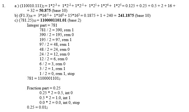 1. Perform the following conversions: a.) (110010.111)2 = (base 1...