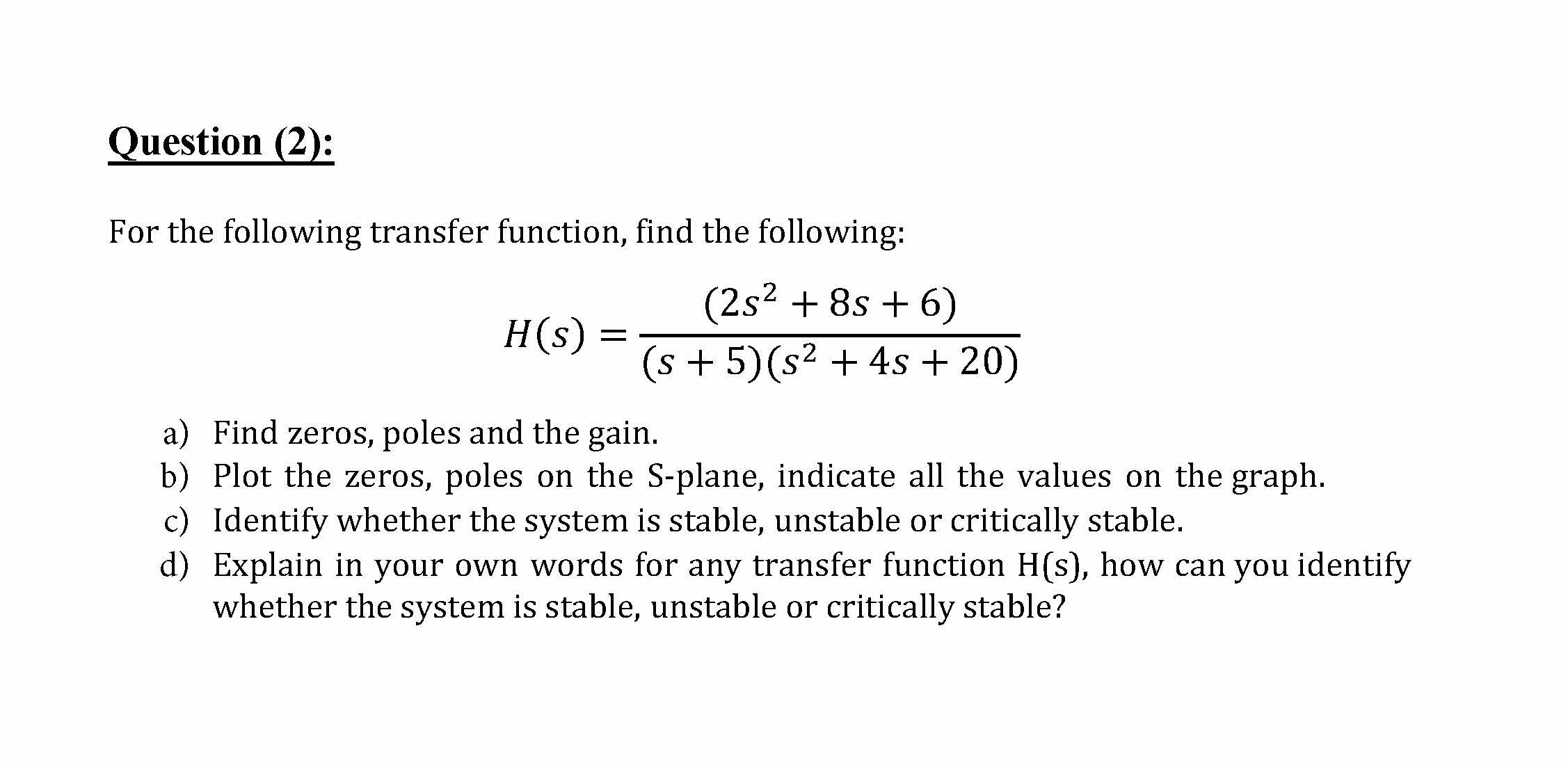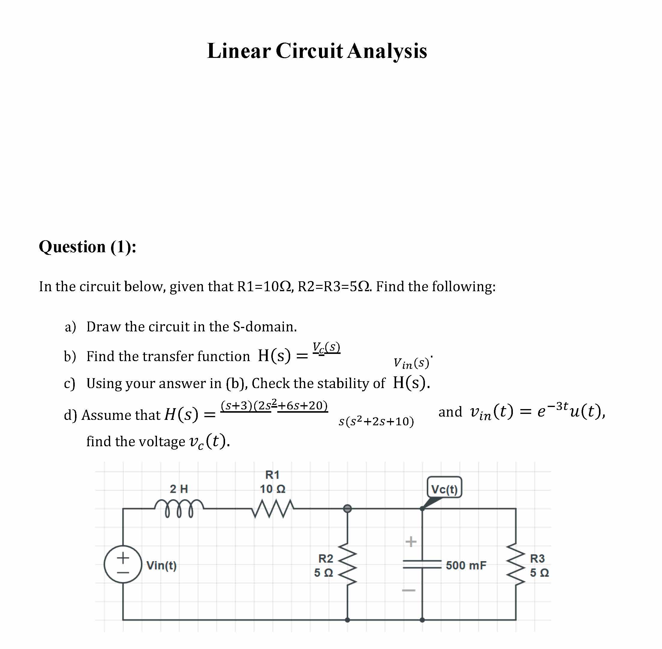 Linear Circuit Analysis Question (1): In the circuit below, given...