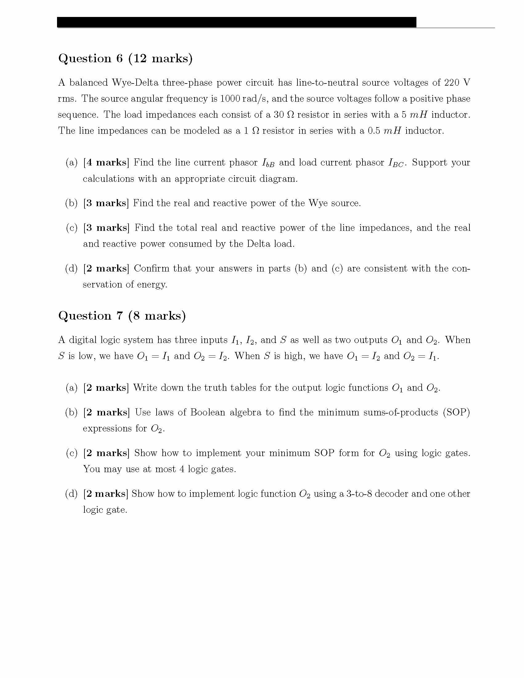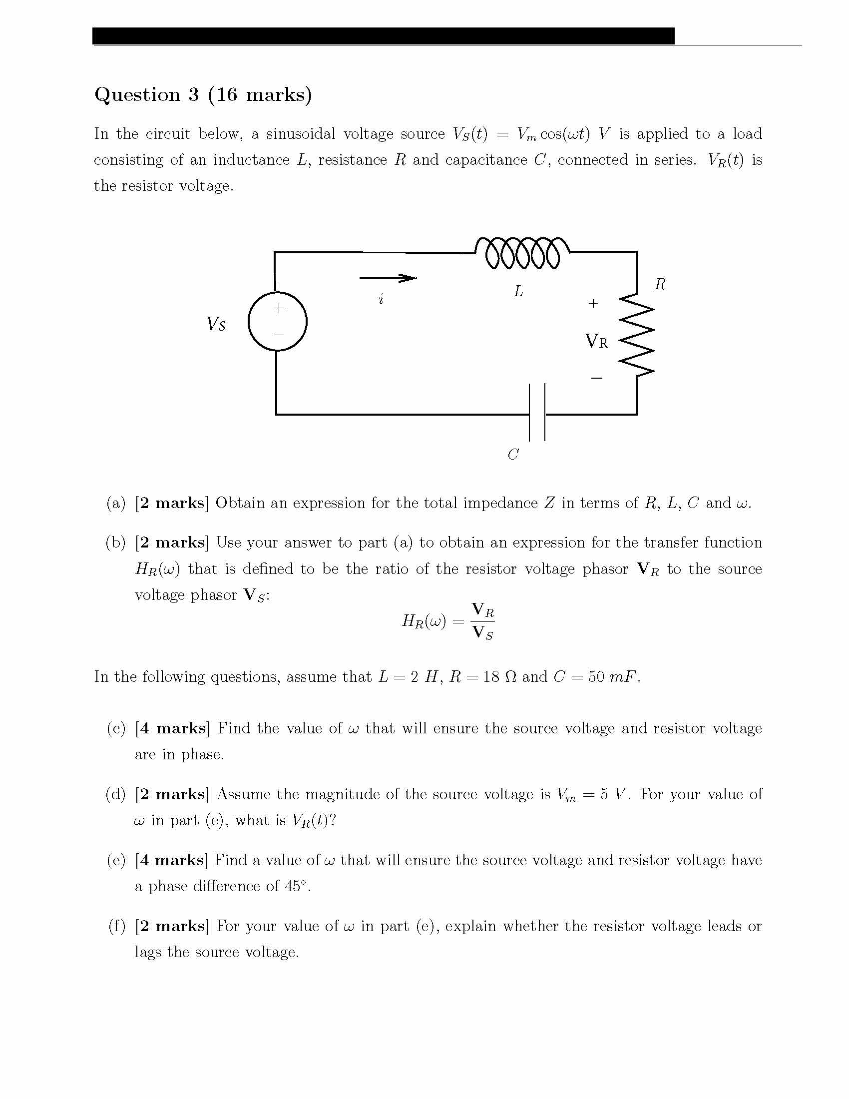 Question 2 (12 marks) Consider the following circuit, with output ...
