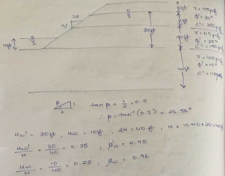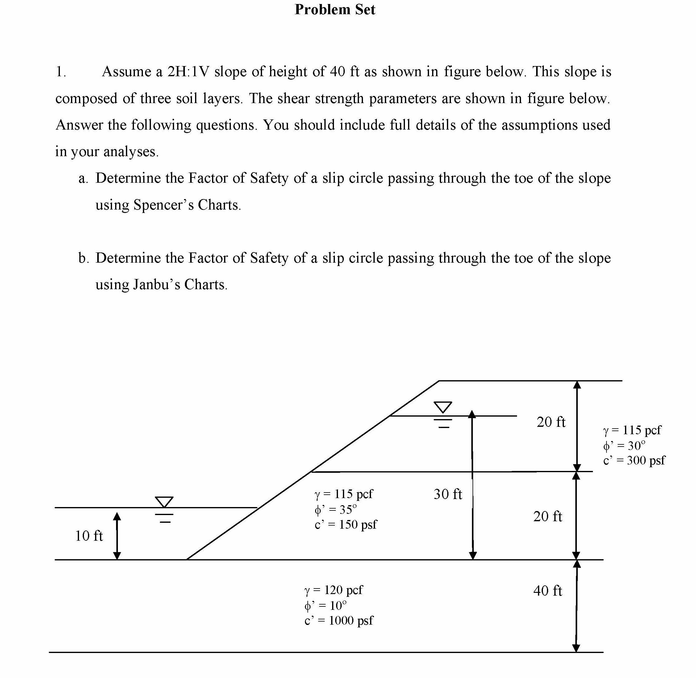 Problem Set 1. Assume a 2H:1V slope of height of 40 ft as shown i...
