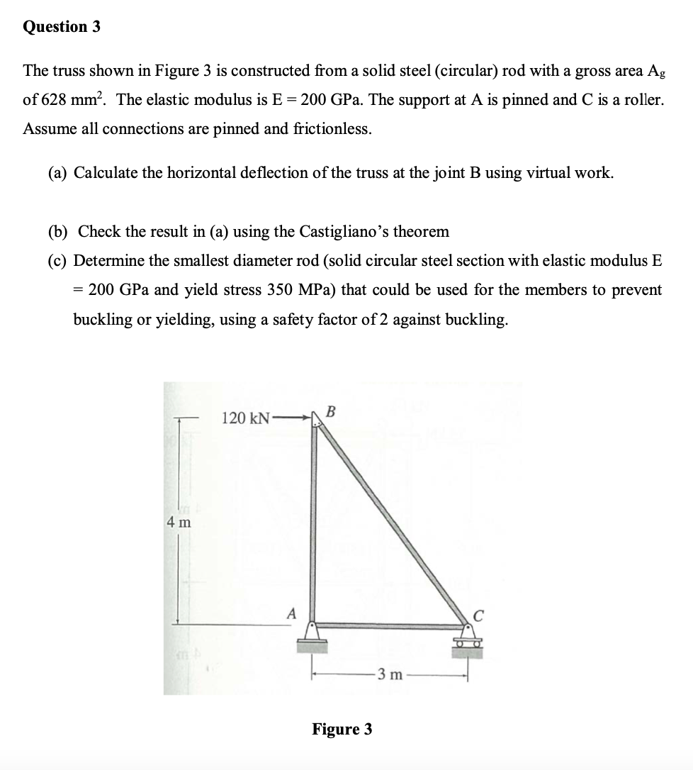 Question 3 The truss shown in Figure 3 is constructed from a solid...