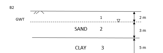 B2. A layer of fine sand 5 m thick overlies a thick bed of soft cla...