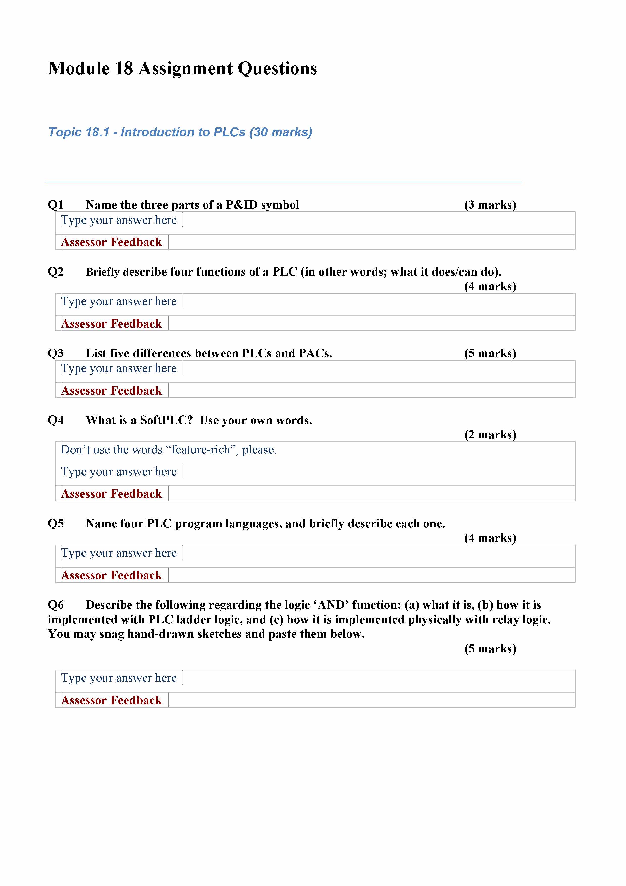 Module 18 Assignment Questions Topic 18.1 - Introduction to PLCs (...