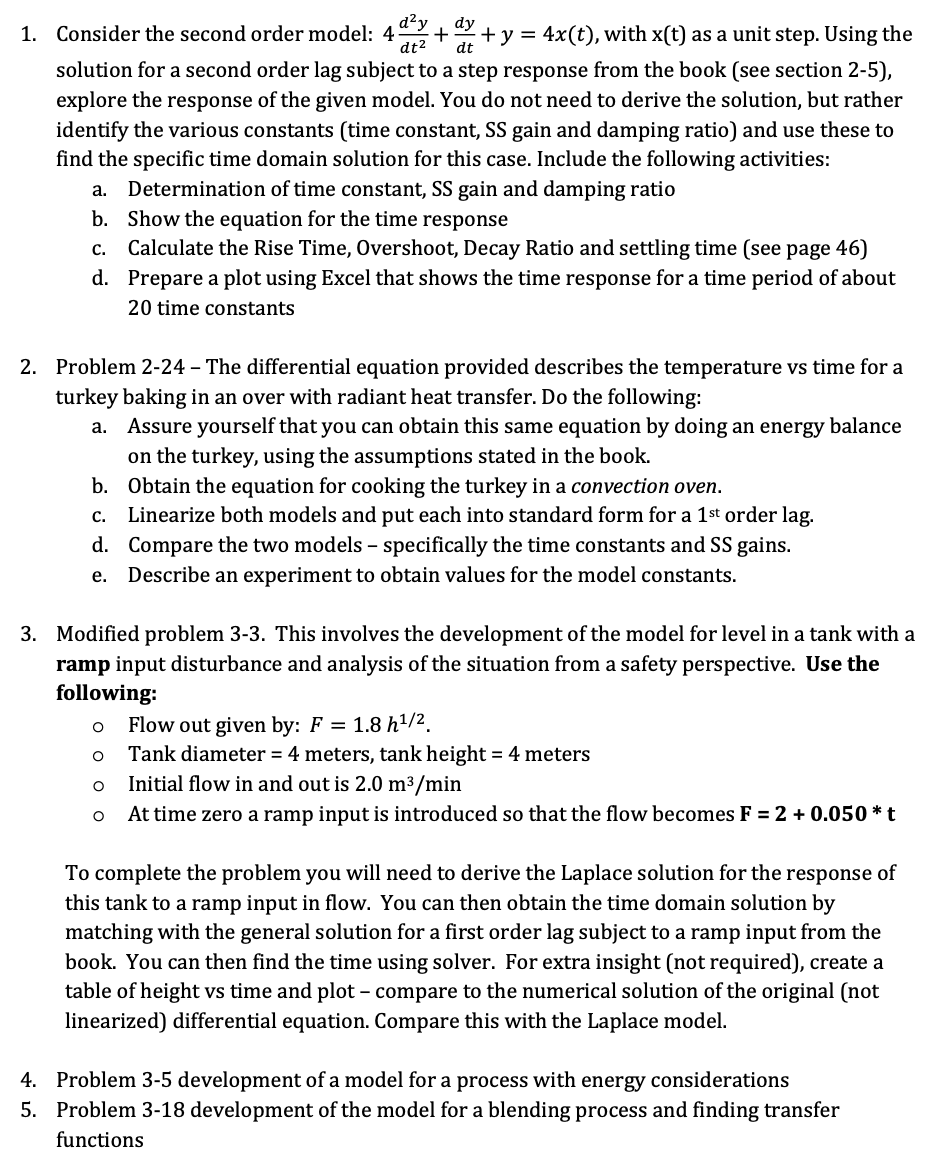 1. Consider the second order model: 4 +y - 4x(t), with x(t) as a un...