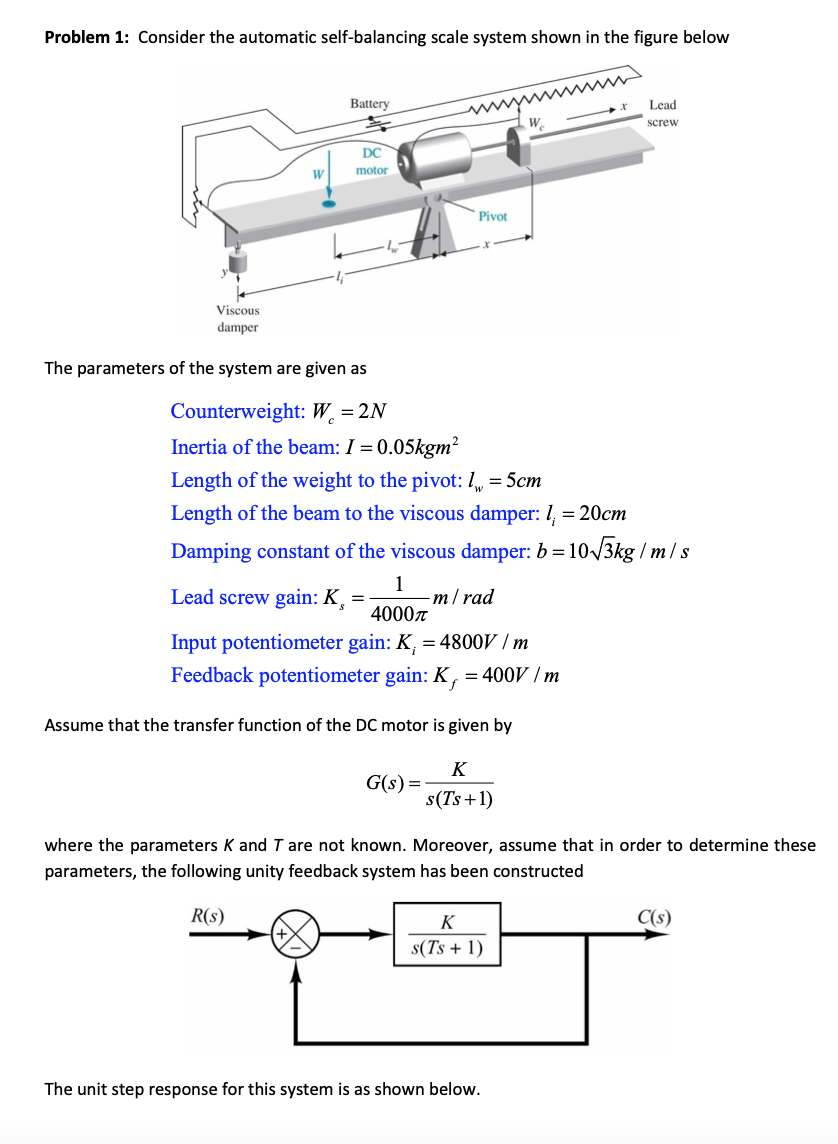 Problem 1: Consider the automatic self-balancing scale system shown...
