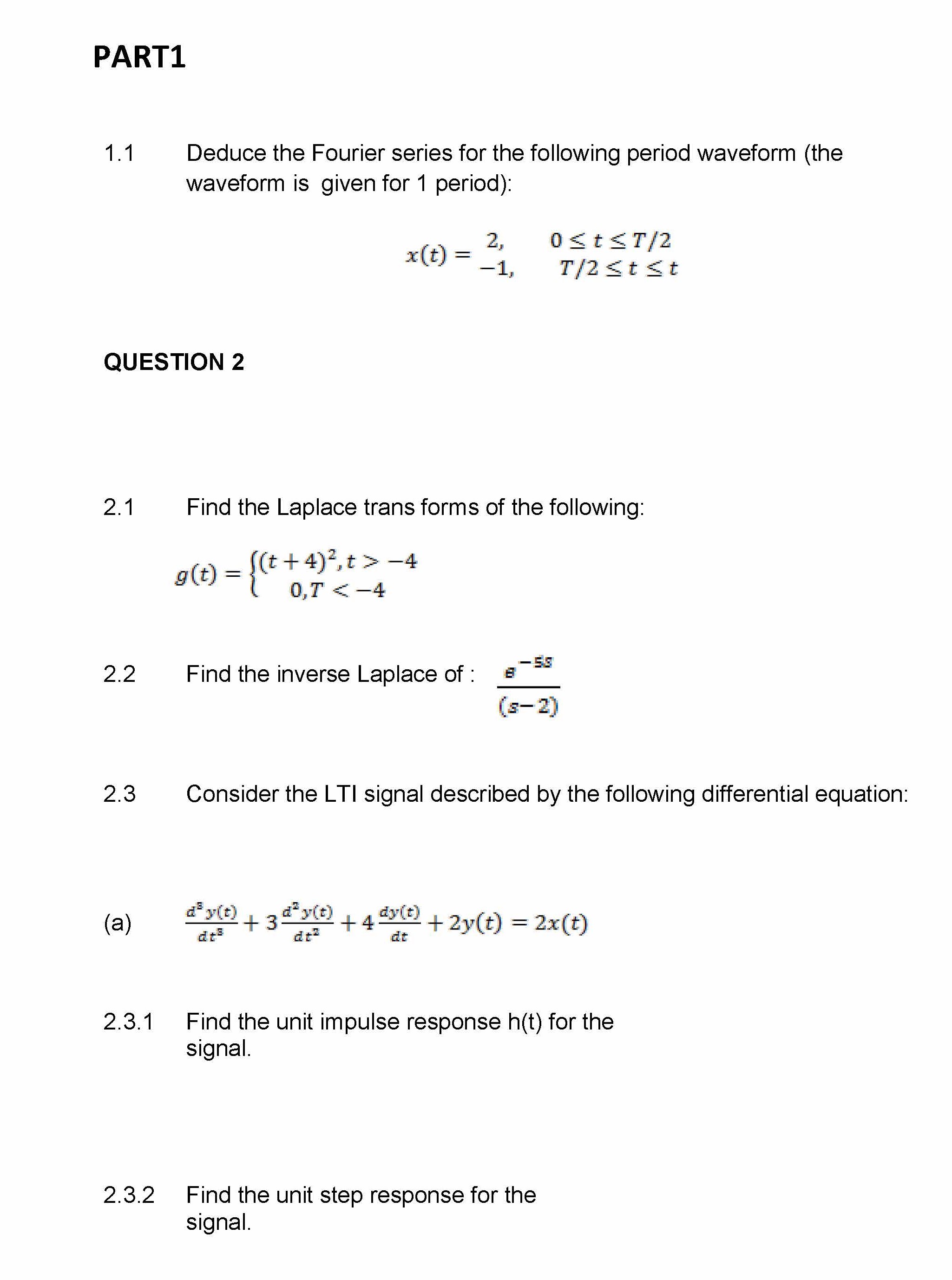 1 PART1 1.1 Deduce the Fourier series for the following period wa...