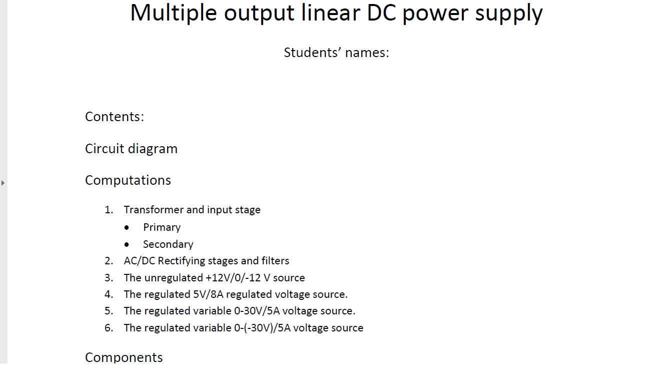 Design of a multiple-output linear DC power supply Specifications...