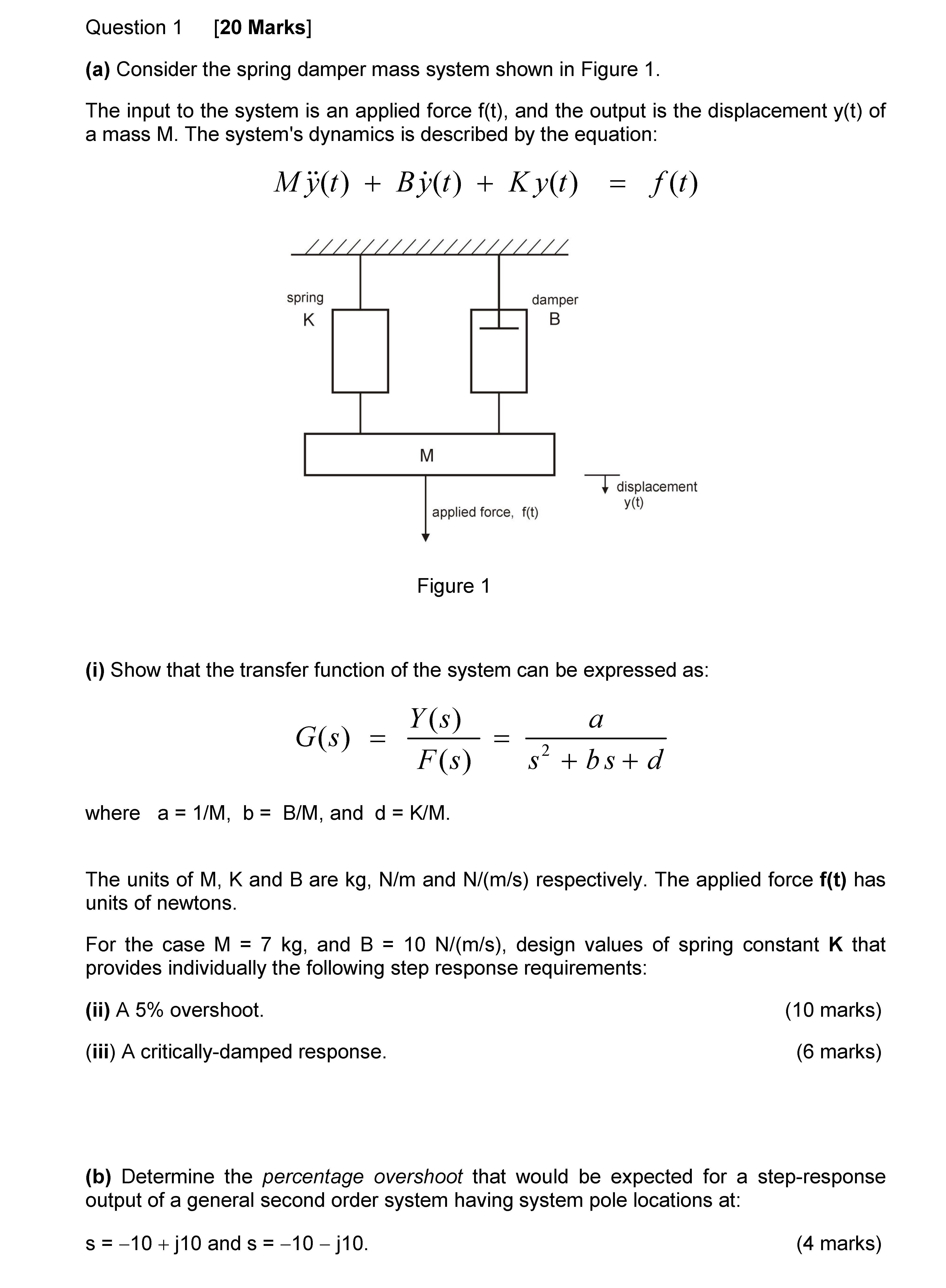 Question 1 [20 Marks] (a) Consider the spring damper mass system s...
