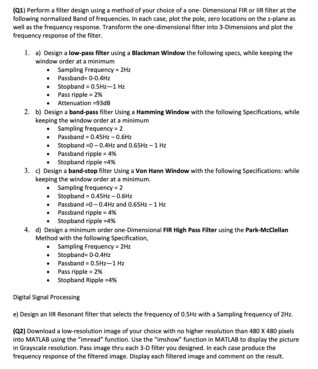 (Q1) Perform a filter design using a method of your choice of a one...