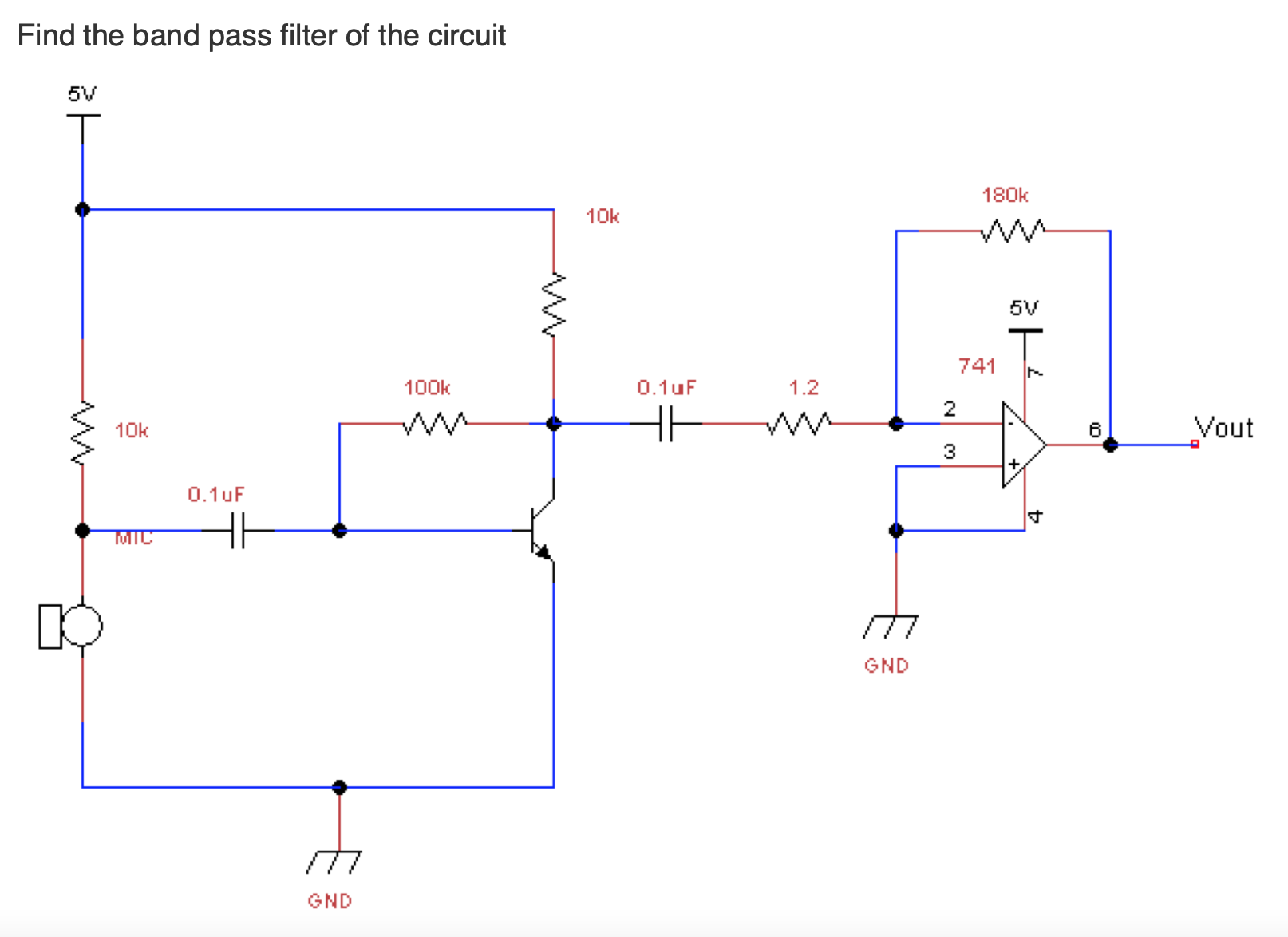 Find the band pass filter of the circuit 5V 180k 10k 5V 741 T...
