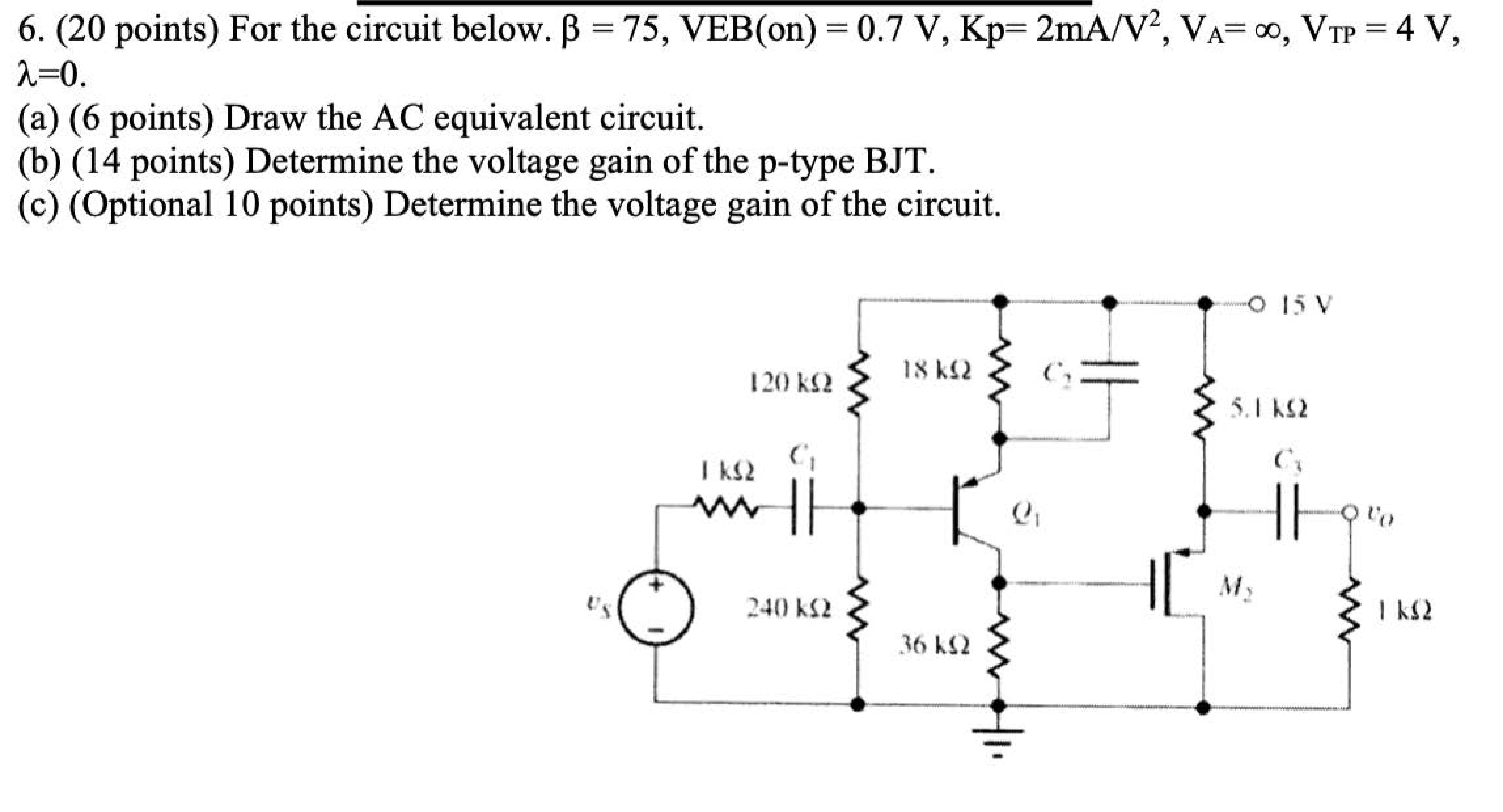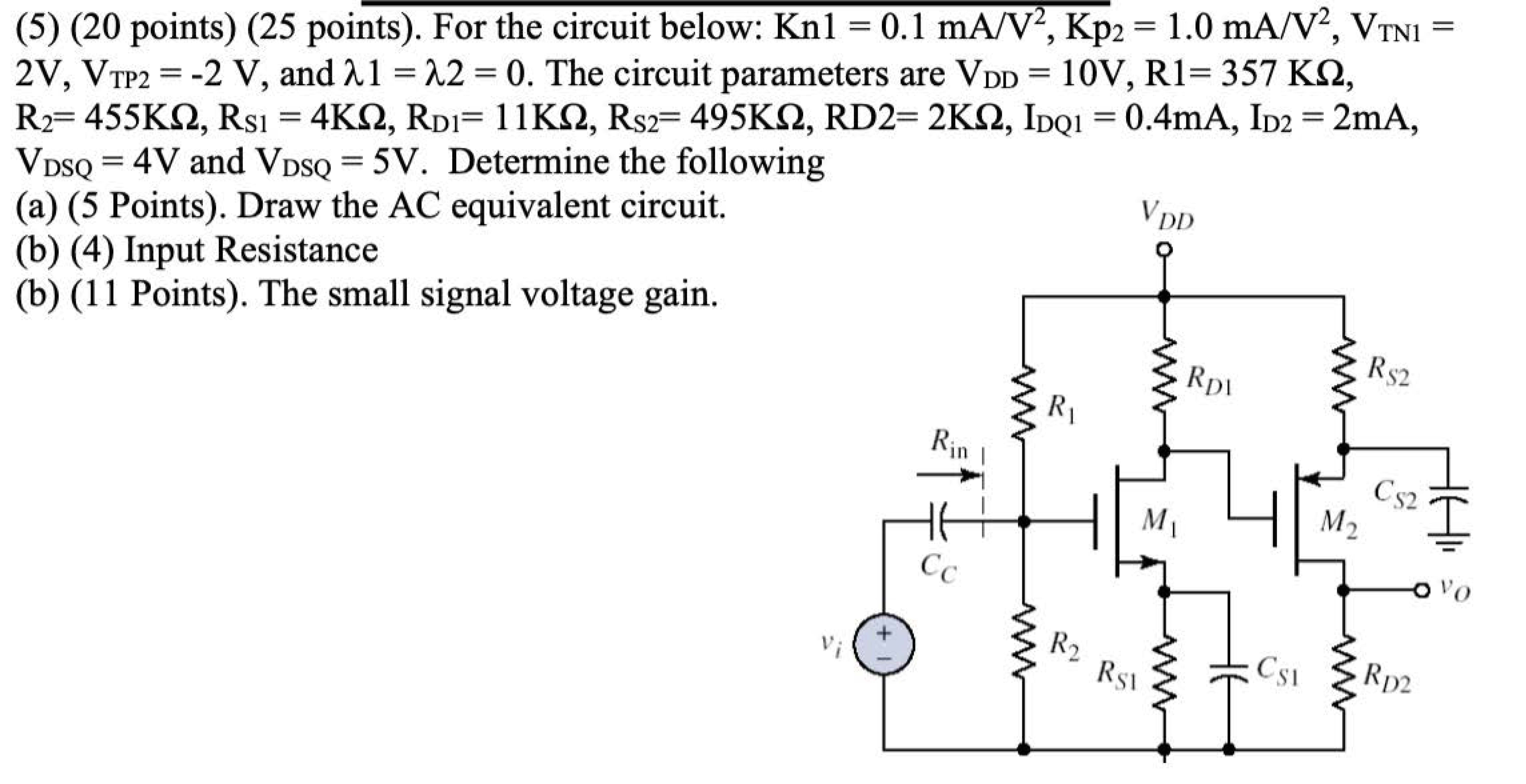 (5) (20 points) (25 points). For the circuit below: Knl = 0.1 mA/VÂ...