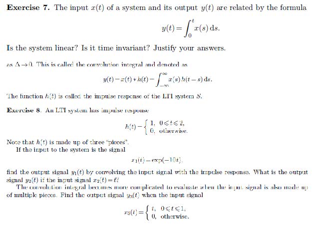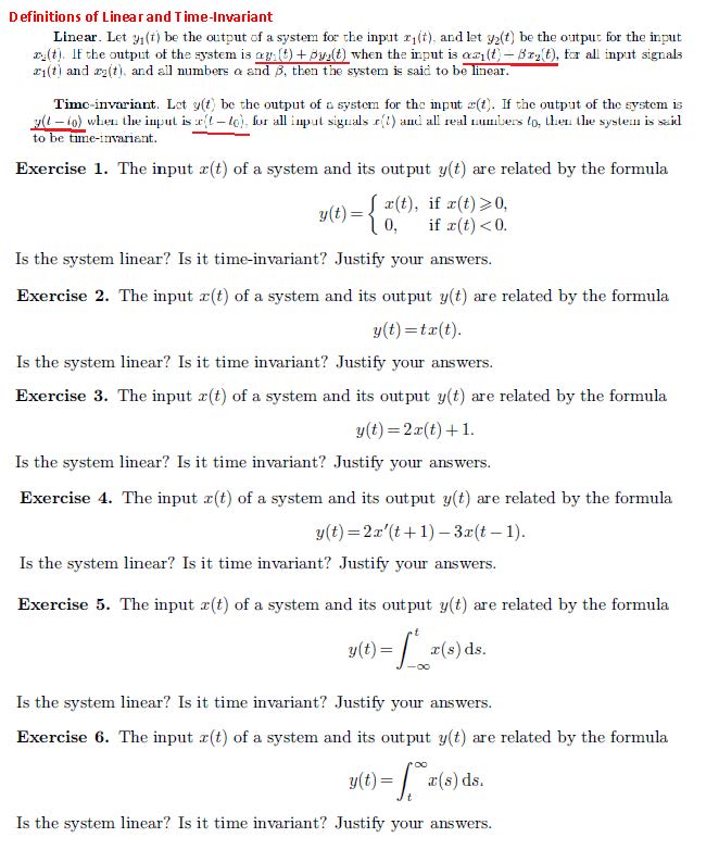 Definitions of Linear and Time-Invariant Linear. Let (1(t) be the...
