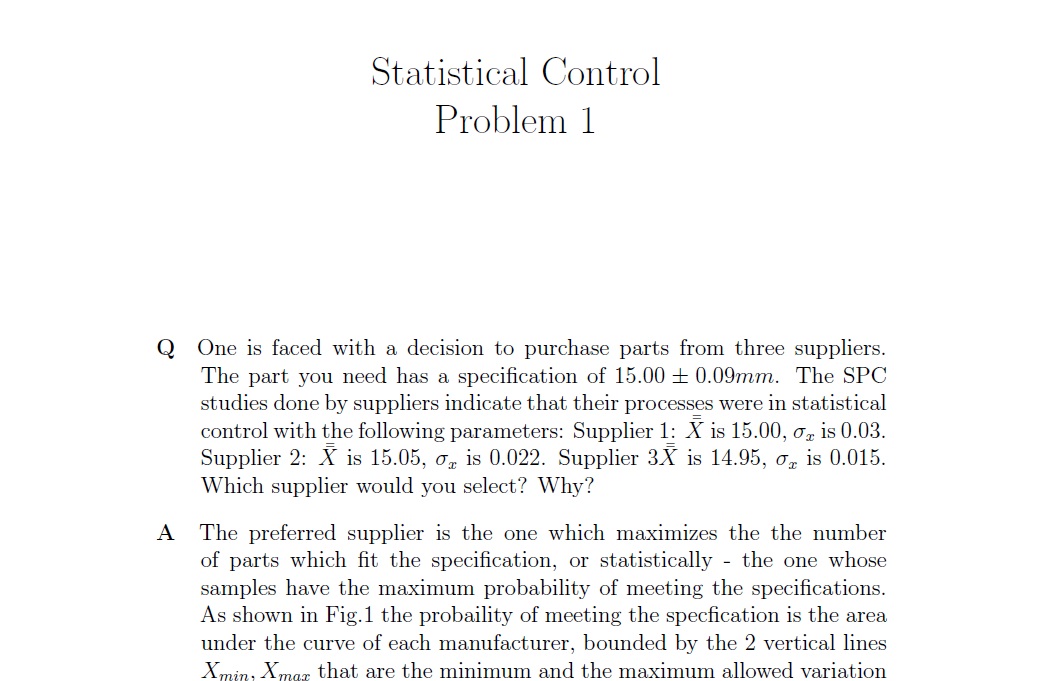 One is faced with a decision to purchase parts from three suppliers...