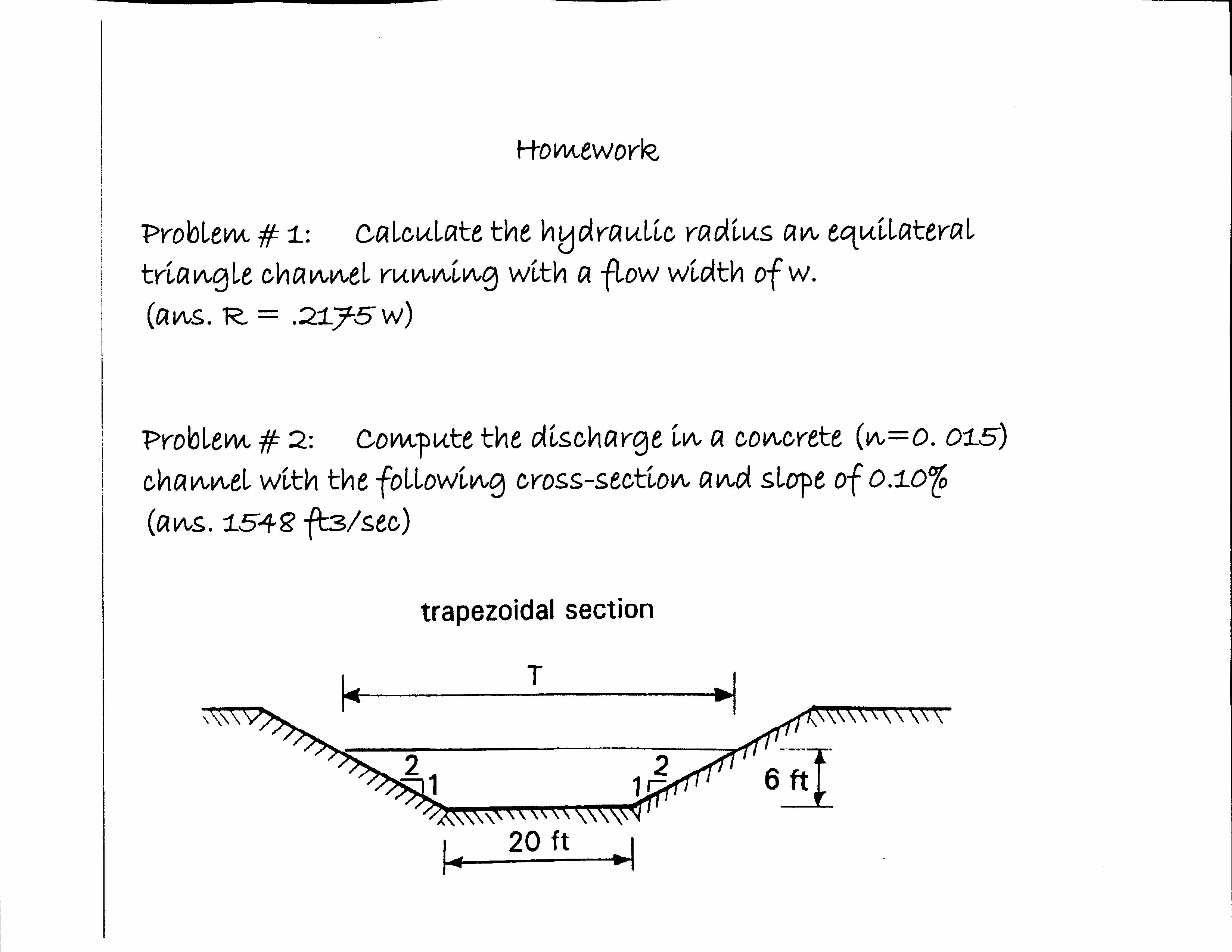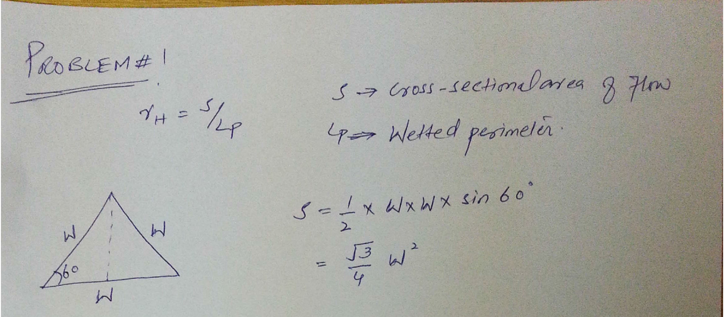 Problem # 1: calculate the hydraulic radius an equilateral triangl...