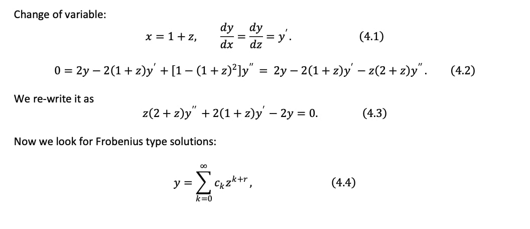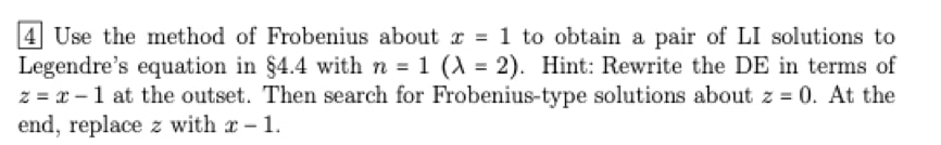 4 Use the method of Frobenius about x = 1 to obtain a pair of LI so...