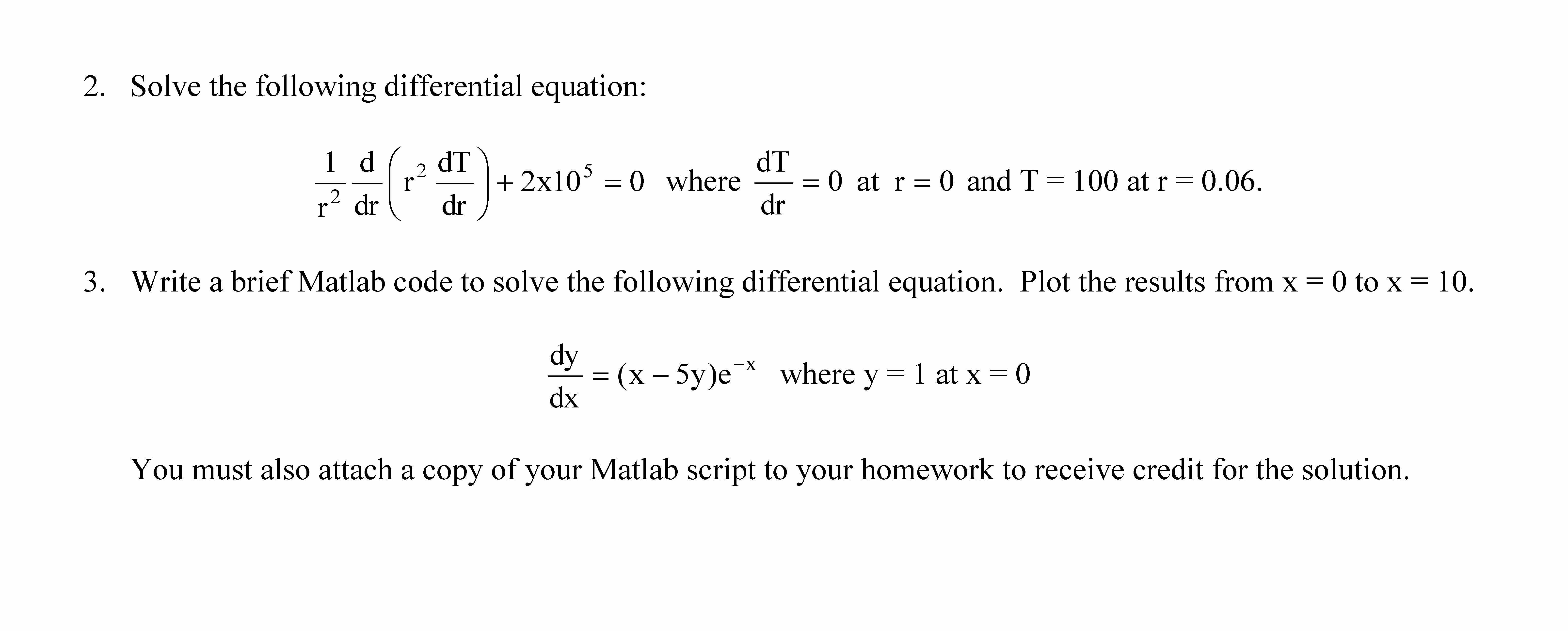 2. Solve the following differential equation: 0 at r = 0 and T = 1...